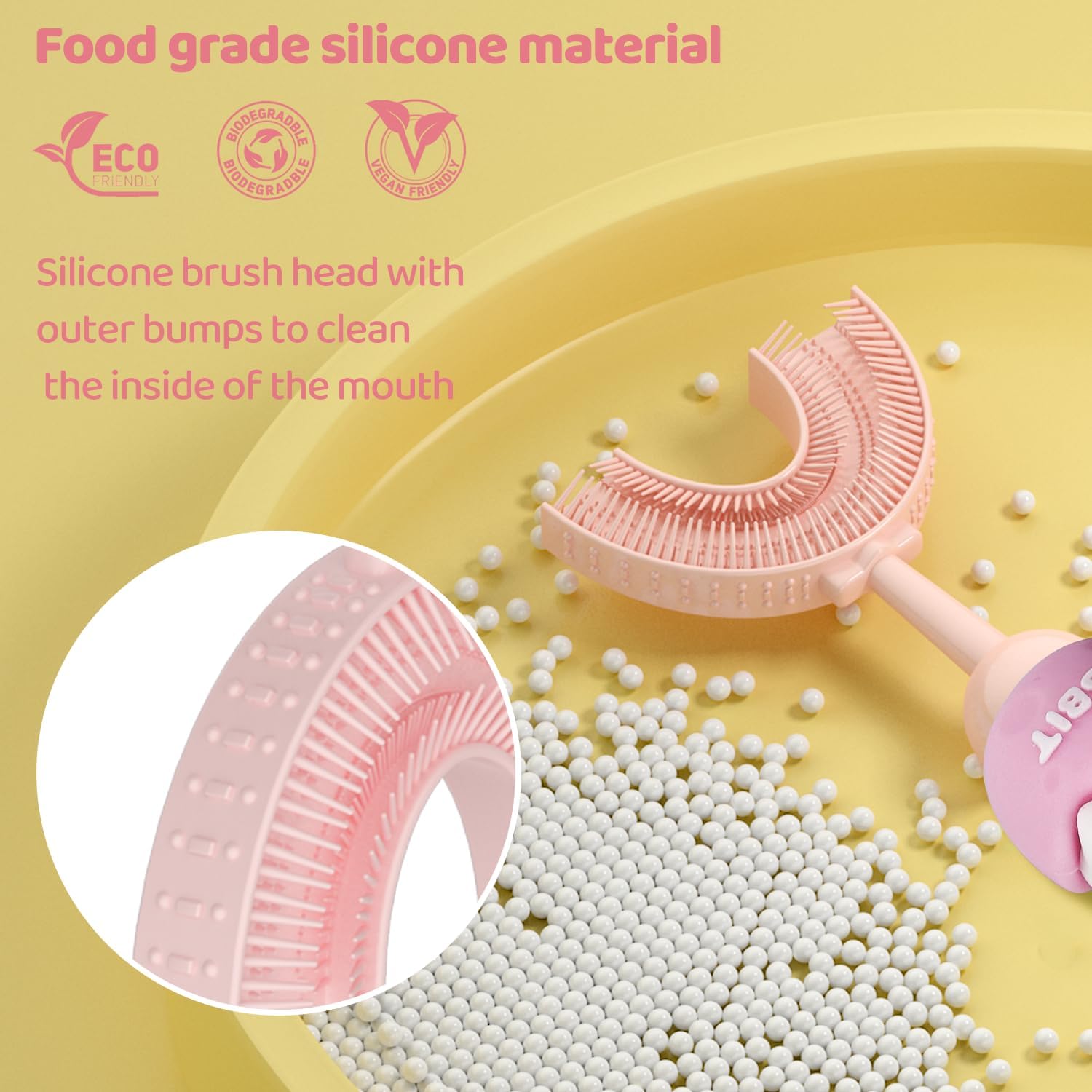 U-Shaped Toothbrush for Kids Ages 2-7,Soft Food-Grade Silicone for Sensitive Gums,360° Teeth Cleaning Design,Training & Travel-Friendly Toddler's Toothbrush (Pink)
