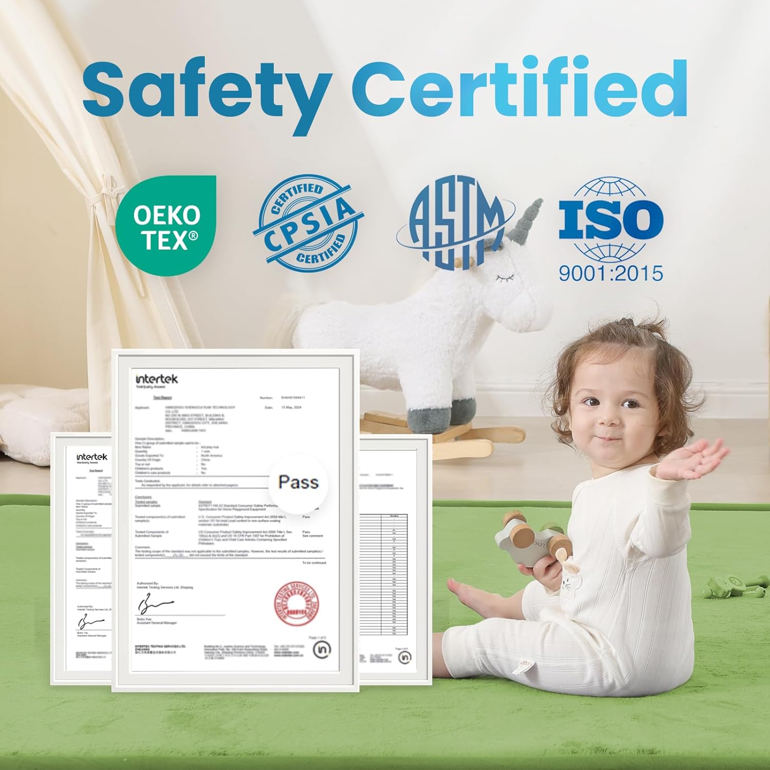 Ultra Soft Baby Play Mat,1.3" Thick Elasti-Foam Tummy Time Mat for Infants,Toddlers,Kids,Water-Repellent Coral Fleece Nursery Rug,Non-Slip Safe for Crawling&Hardwood Floors(Olive Green)