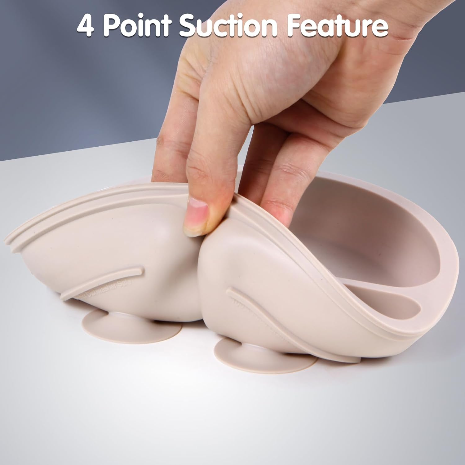 - Unique Design: There are 4 small suction cups on the bottom of our baby plates, which are evenly distributed and can be firmly fixed on any smooth surface to keep the plates in place at all times, especially on high chairs and trays, which encourages babies to eat independently without causing messy meals!