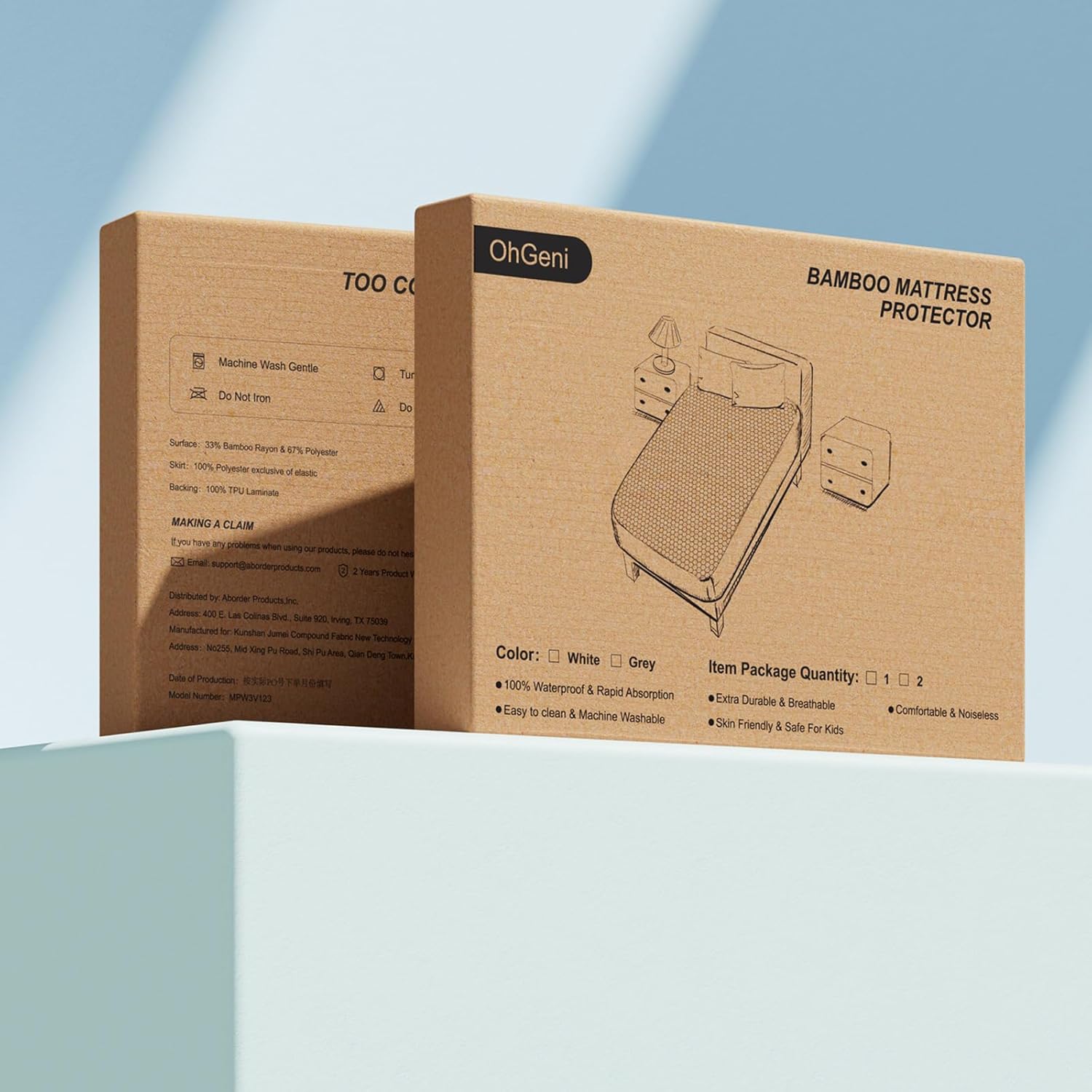 OhGeni 100% Waterproof Mattress Protector, Twin-Gray Size Mattress Pad, Fits 6"-20" Mattresses with Deep Pocket, Cooling, Breathable Fitted Sheets, Soft Bed Cover, Noiseless, Machine Washable