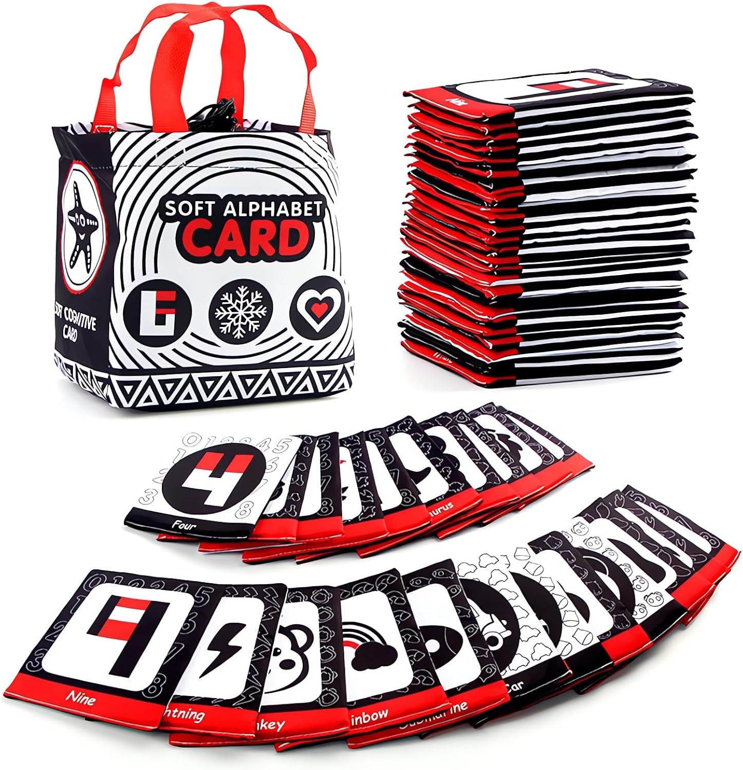 - πΆπ€π’γ 26 Pieces ABC Letter and Number Cards γ Believing that babyβs safety is more important than anything, our alphabet flash cards are made of soft polyester. These alphabet flash cards are washable and tear-resistant, sturdy and neat stitching can withstand countless washing