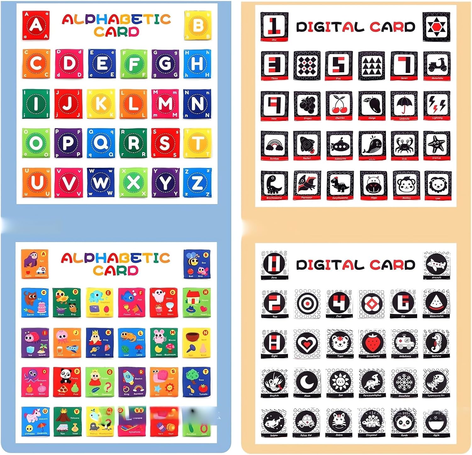 - πΆπ€π’γ Early Educational Baby Cards Learning Toy γ Baby can learn letters and words through the vivid colors and interesting patterns, it promotes baby's observation, language, reading, imagination, sensory, memory skills. Itβs a good tool to enhance parent-child interaction