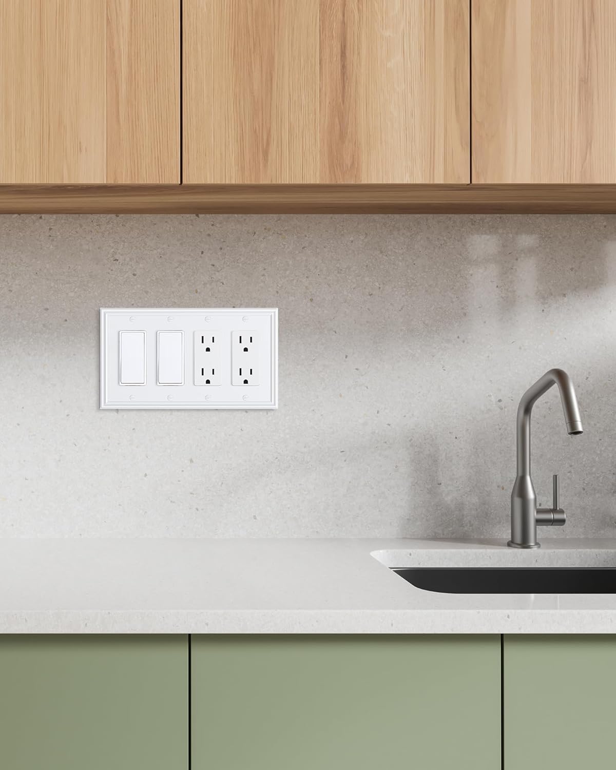 - Wide Application - Versatile and easy to match, These pure white wall plates are compatible with Decorator Outlet Receptacle, Roker Switch, Dimmer Switch, GFCI Outlets. Complements any interior style, whether your decor is modern, traditional, or contemporary, this decorative switch plate cover seamlessly blends in and glams up your wall.