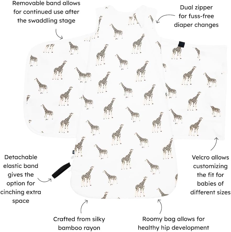 - Fully removable swaddle wrap attached to the sleep bag via Velcro, which allows for different positioning of the swaddle as baby grows.