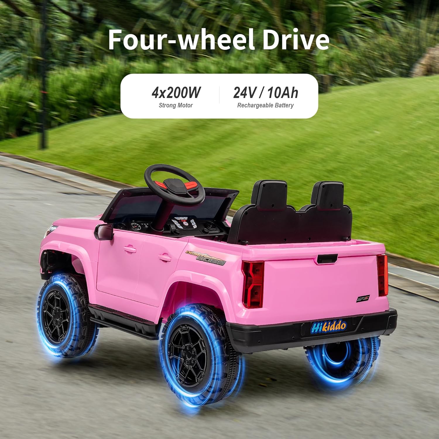 - SWITCHABLE 2WD/4WD: This battery powered cars for kids switches between 2WD and 4WD to adapt to different surfaces—2WD for smooth and 4WD for rough. It allows kids to explore various environments easily.