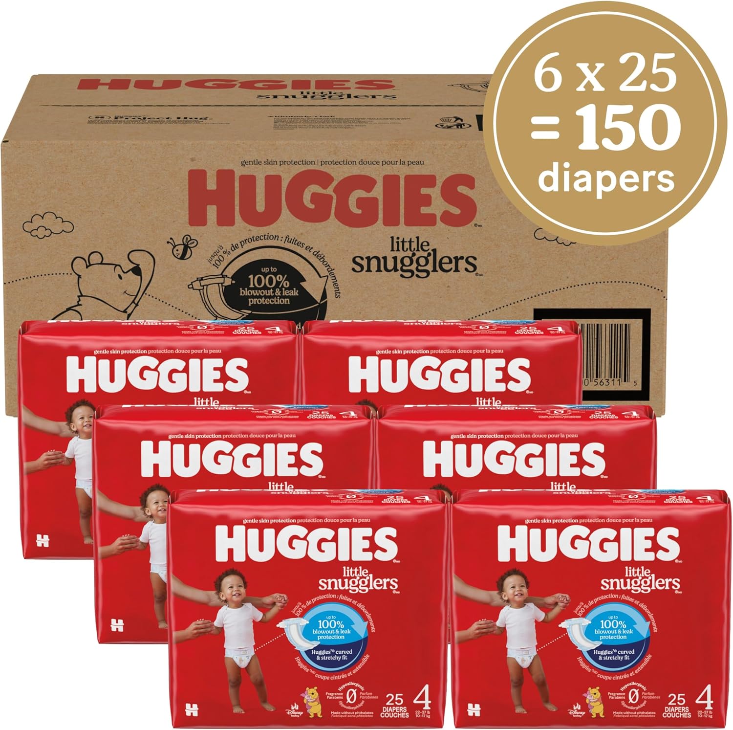 - Huggies Size 4 Diapers: 150 Little Snugglers Baby Diapers (6 Packs of 25), size 4 (22-37 lbs), packaging may vary