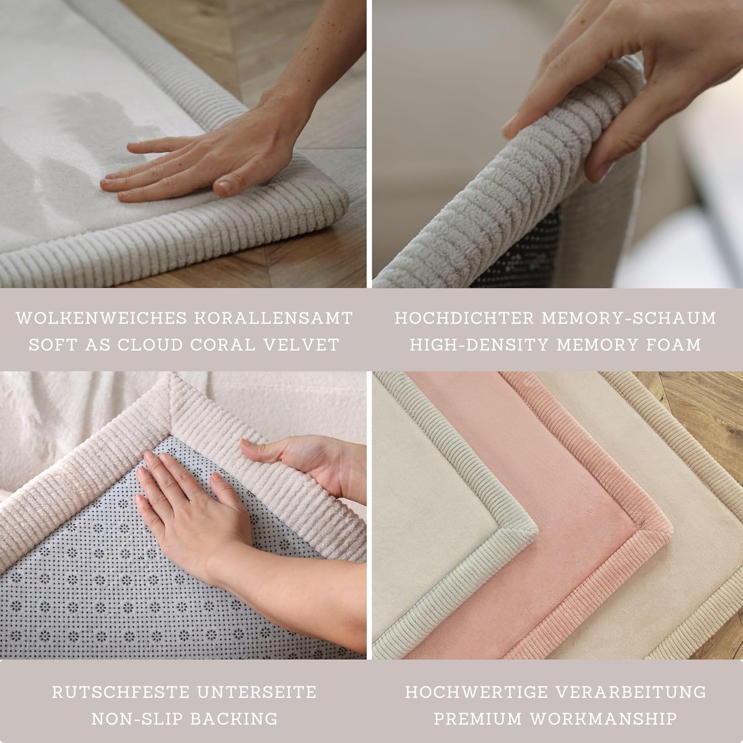 - This first choice for stylish parents – this premium baby floor mat complements your decor in your living room or nursery. This beautiful memory foam rug in pastel colours blends in perfectly with your interior decor, creating a sense of harmony and comfort.