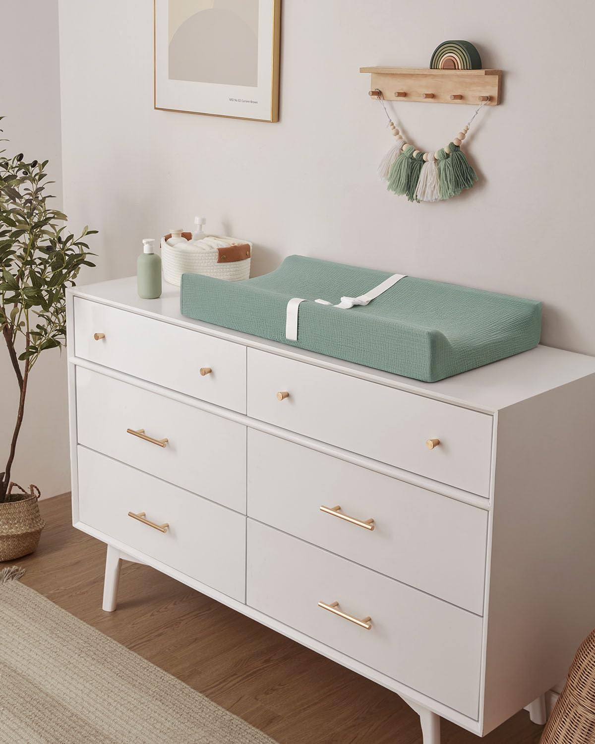 - Design Your Dream Nursery: Our muslin baby changing pad in Roman Green adds an elegant and soothing vibe in your nursery. It's the first choice for modern parents, an unforgettable unisex baby shower gift that new parents will love