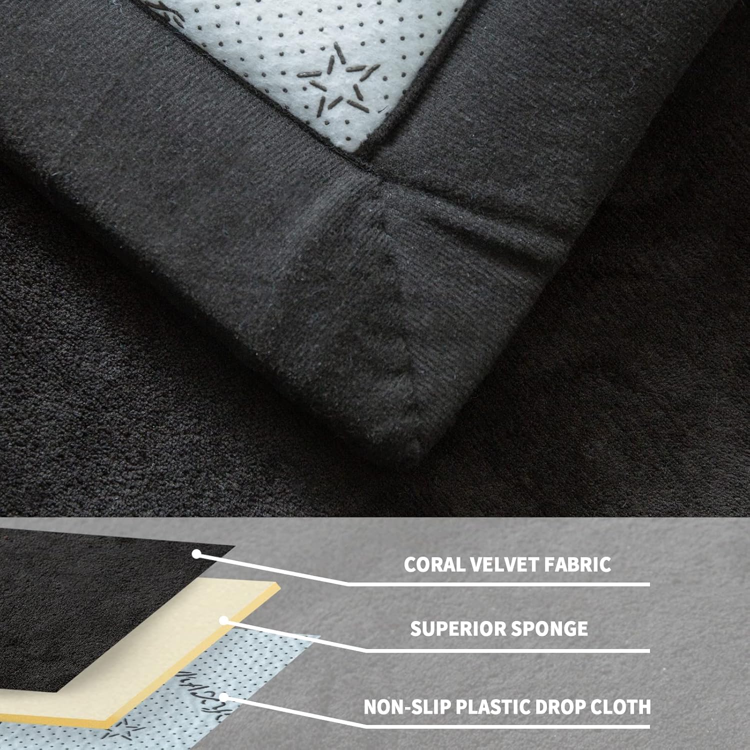 MAXYOYO Black Coral Velvet Area Rug, Thick Japanese Tatami Mat Living Room Carpet with Non-Slip Backing, Large Solid Color Mat for Bedroom Dormitory Yoga, 49 by 49 inch
