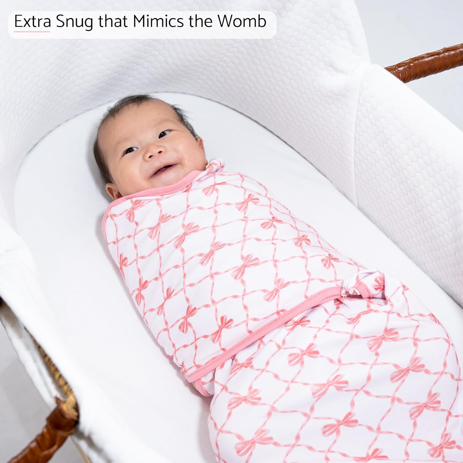 LollyBanks Baby Swaddles 100% Organic Cotton, 0-3 Months Baby Girl Swaddles with Easy Change Zipper, Swaddle Sack for Newborn Girls (Pink Bow Print)