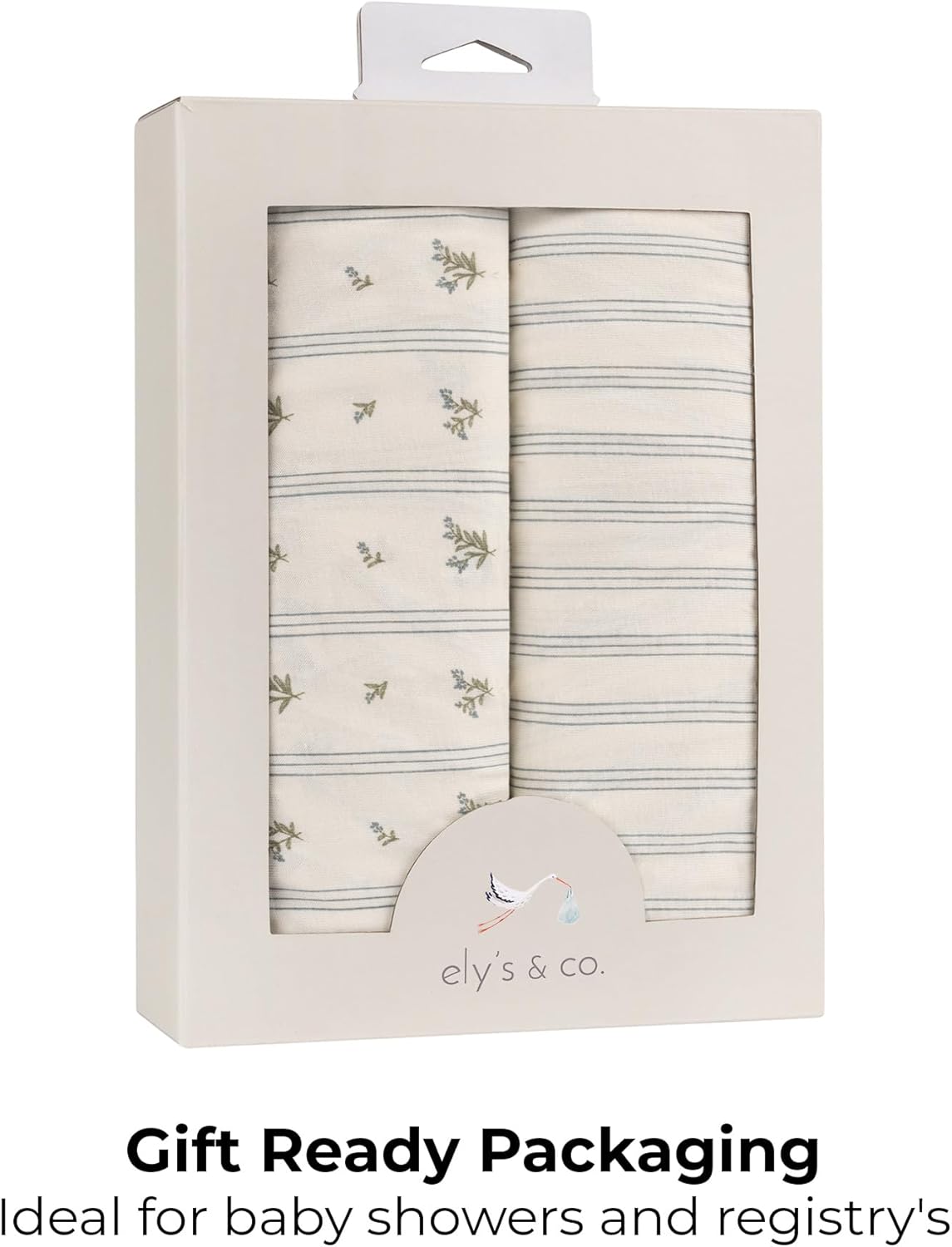 - Linear Berry Leaf Design: Elevate your baby boy’s nursery with the Ely’s & Co. Fitted Pack and Play Mattress Sheet Set– a premium 2 pack of baby pack n play sheets. This set features a soft ivory base with a delicate blue berry leaf and stripe print, adding a touch of antique charm to your nursery décor.