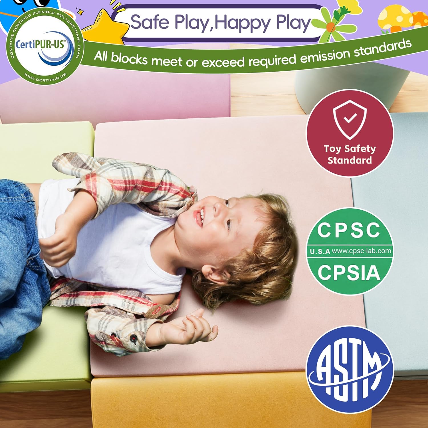 - Safe and Guaranteed: The kids climbing blocks are CPSIA & CPC certified, non-toxic, and tasteless fabric with ASTM approved. Each block is designed with hidden zippers to prevent scratches on delicate skin, and the structure is soft with no sharp edges, reducing the risk of bumps and bruises.