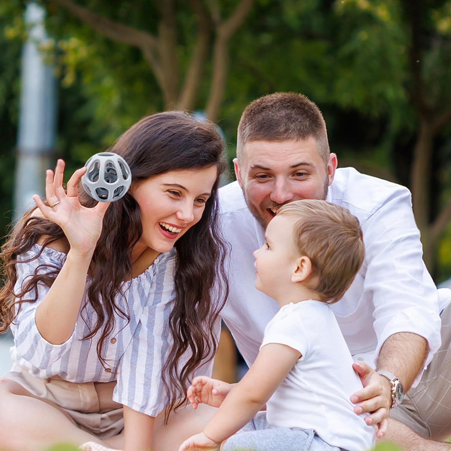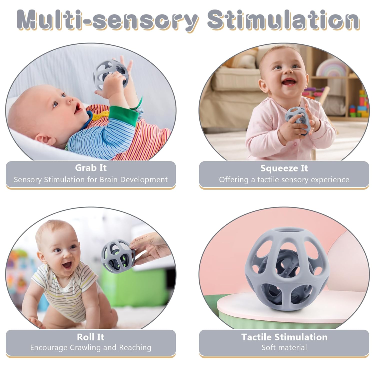 - 【Easy to Grasp & Hold】Designed with tiny hands in mind, this baby ball toy features a size and finger holes that's easy for infants to grasp, promoting motor skill development and sensory exploration. All teether balls do not have small part plugs to avoid the danger of choking hazard. Weight: 76g/2.68oz
