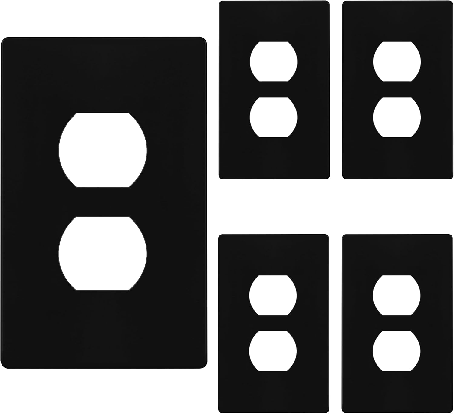 TG Mid-Size Screwless Duplex Wall Plate, Child Safe Receptacle Outlet Cover, Medium Size 1-Gang 4.88" H x 3.11" L, Polycarbonate Thermoplastic, UL Listed, SP-MS1-BK5P, Black (5 Pack)