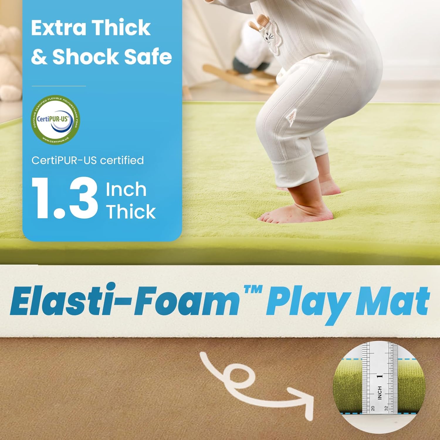 Baby Play Mat for Kids Room,Extra Thick Elasti-Foam Anti-Fall Cushion Mat for Babies,Toddlers,Infants,Water-Repellent&Non-Slip Bedroom Bedside Rugs(Light Green)