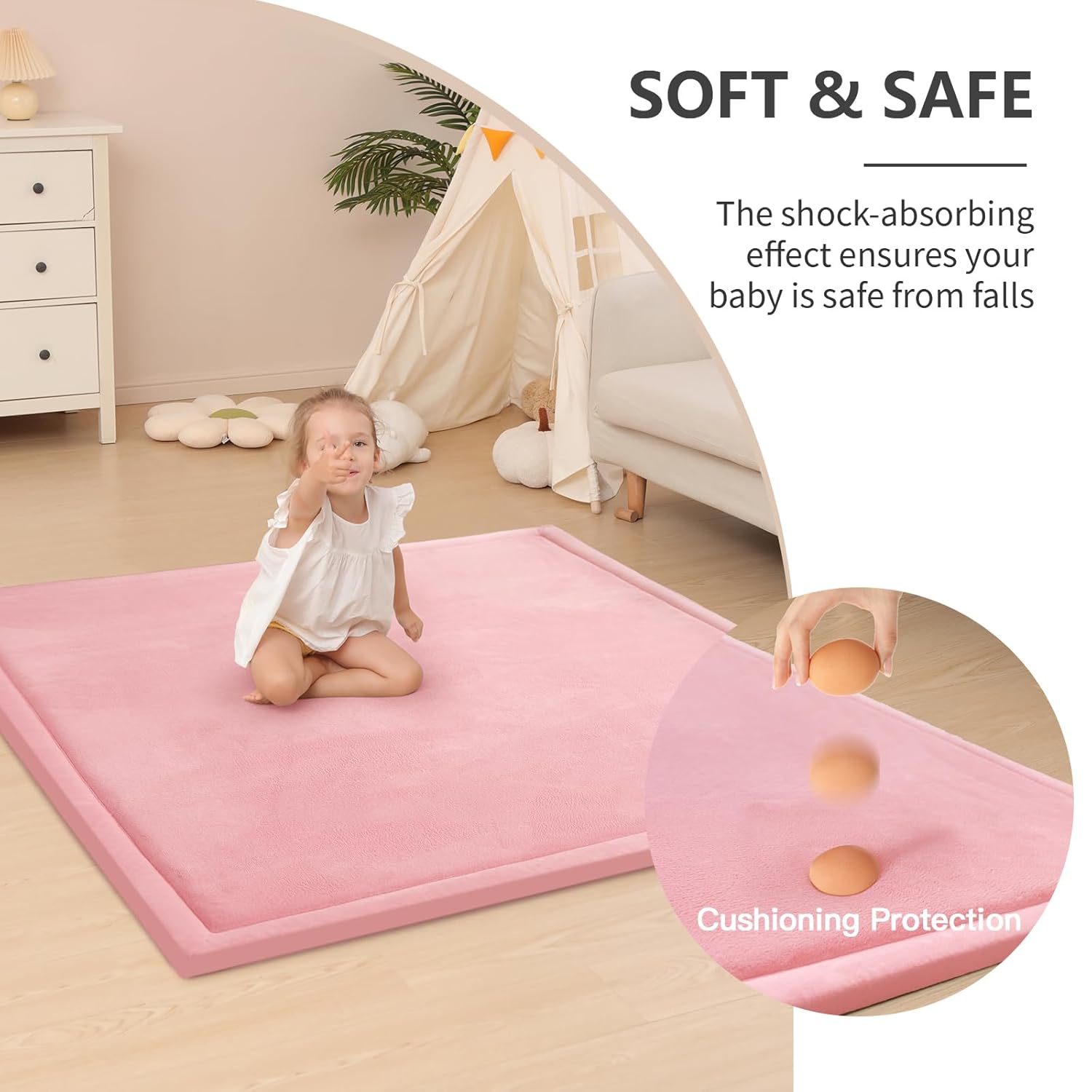 Baby Play Mat for Floor,1.3" Thick Elasti-Foam 50x50 Playpen Mat for Toddlers Infant Kids,Water-Repellent Soft Coral Velvet Tummy Time Mat,Non Slip Crawling Mat,Tatami Mat(Pink)