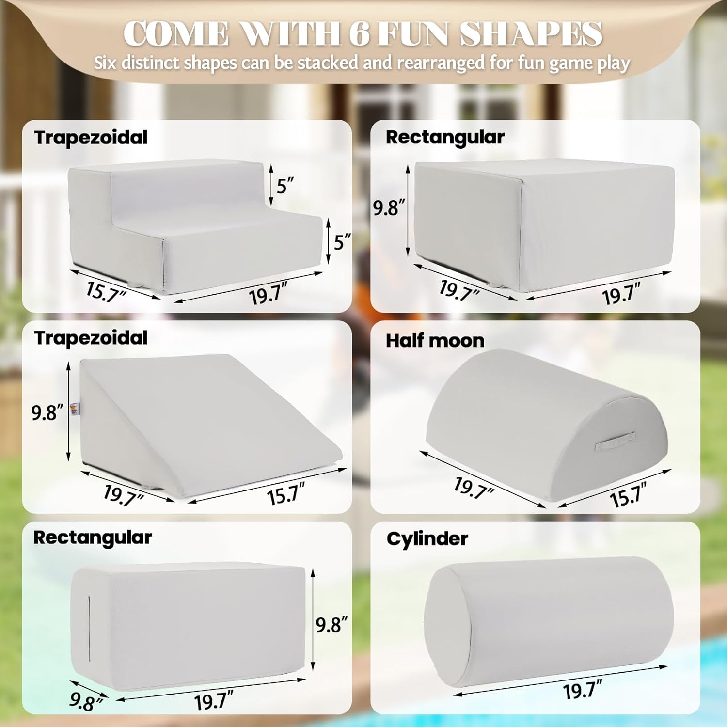 jela Foam Blocks 6Pcs Soft Play Equipment Waterproof Fabric, UV Resistant Toddler Climbing Toys Indoor& Outdoor Soft Play Climbing for Toddlers, Lightweight Climbing Blocks for Babies, Kids (Sand)