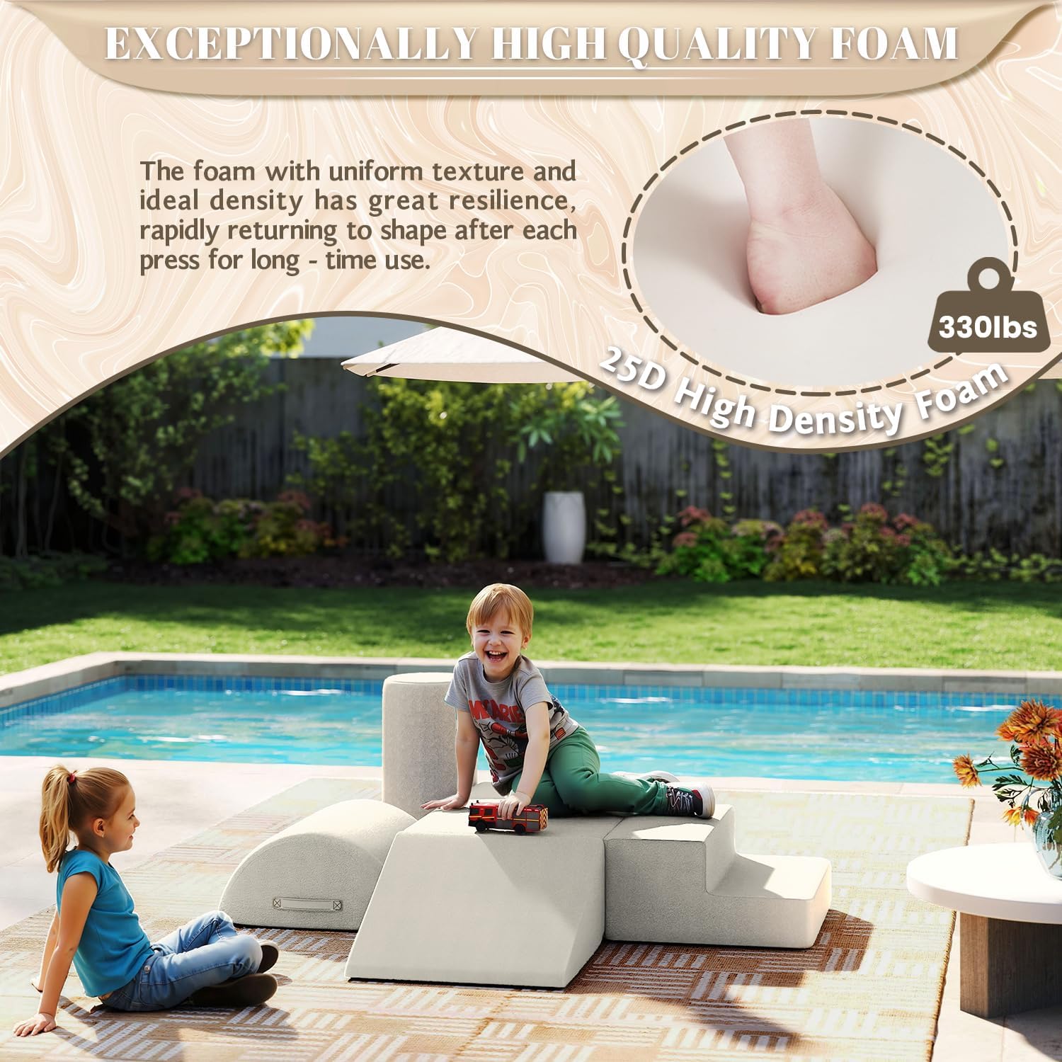 - HIGH DENSITY FOAM SUPPORT: 28D high density foam with excellent bounce and support for long-year use instead of usual hard cheap foam in market which can not bounce back called disposable foam.Our foam climbing blocks are more suitable for kids to climb, crawl, glide and play blocks. Our parents can be more assured that their child can wildly have fun on this toddler foam climbing blocks.