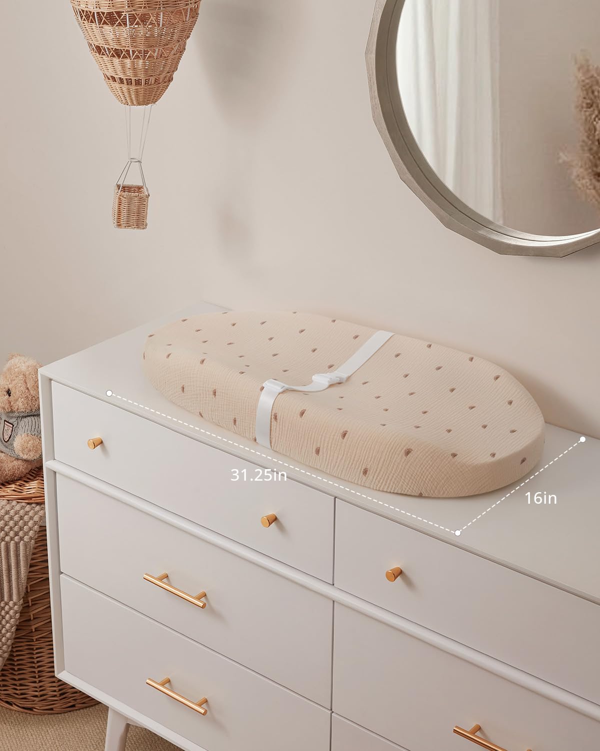 - Premium Muslin & Comfy Design: Made from a soft, breathable muslin cotton cover and a cushioned foam pad, our baby changing pad is gentle on your little one's delicate skin, keeping them warm and cozy during diaper changes in all seasons