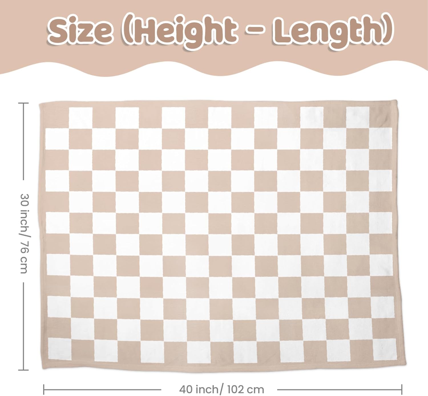 Checkered Minky Baby Blanket 30 x 40 Inches for Boys Girls, Soft Plush Receiving Blanket with Dotted Back, Gift for Toddler Newborn Infant Christmas Birthday Baby Shower