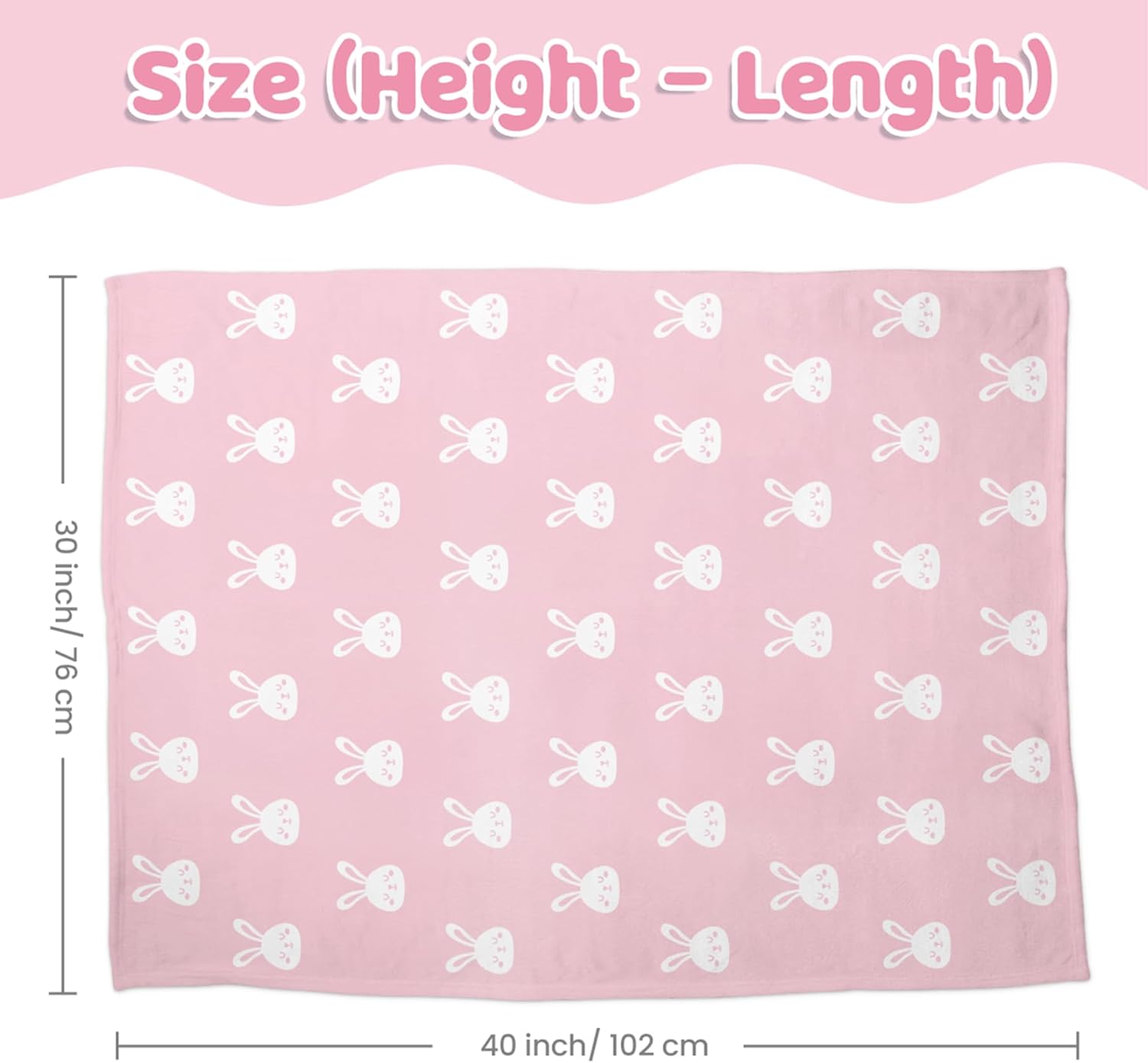Rabbit Minky Baby Blanket 30 x 40 Inches for Girls, Soft Plush Receiving Blanket with Dotted Back, Gift for Toddler Newborn Infant Christmas Birthday Baby Shower