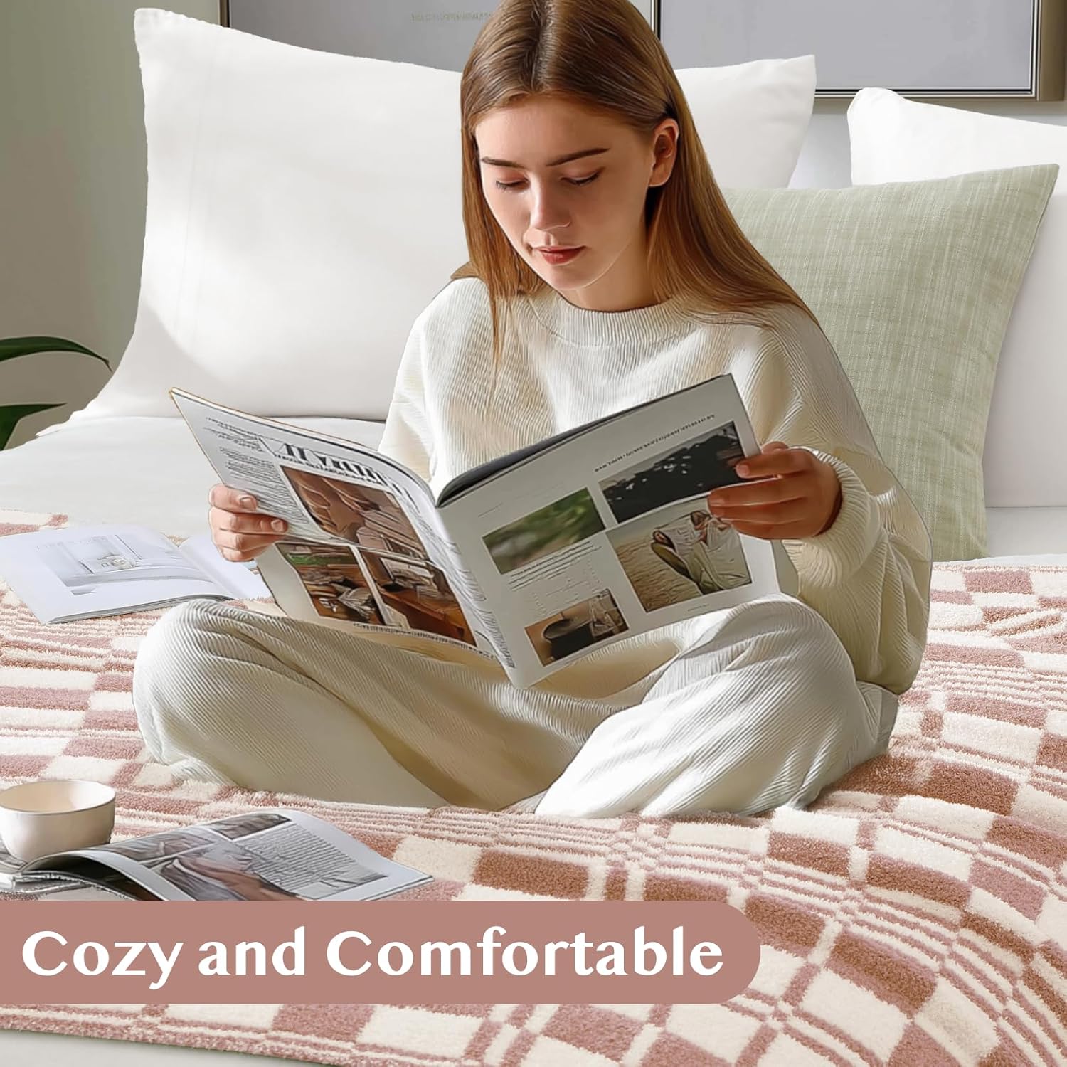 - Multiple Usage: A cute color with a classic check. Hang this checkered blanket on your couch, sofa, chair, or bed to add design to a room. This cozy blanket can also be used as a quilt replacement. Suitable for relaxing at home, travelling outdoors, watching TV, and reading.