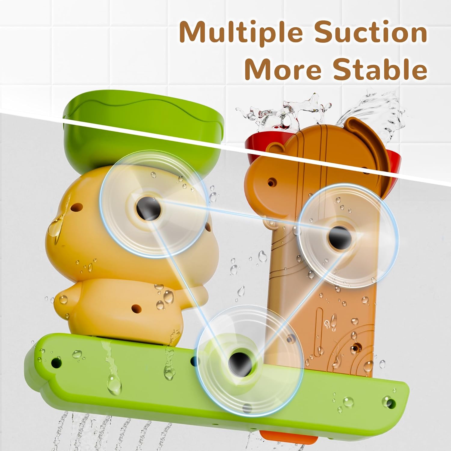 - 【Super-Secure Suction】Multiple strong suction cups firmly attach the toy to tub or tile surfaces, ensuring stable playtime fun throughout bath time.