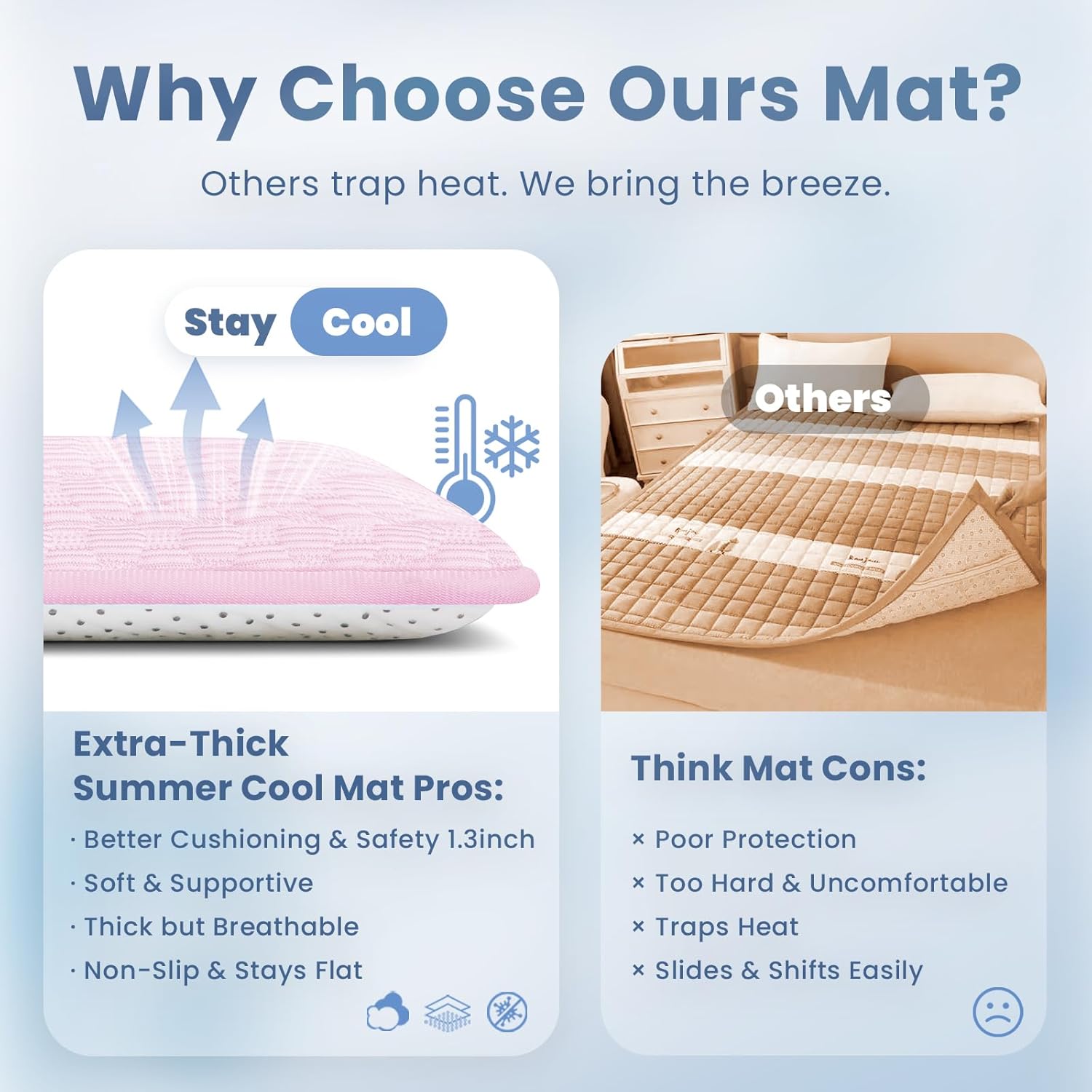 Baby Play Mat for Summer,1.3 Thick Memory Foam Cooling Floor Tummy Time Mat, Soft & Breathable, Non-Slip Rectangular for Toddlers’ Playtime & Rest(Pink,59"x79")