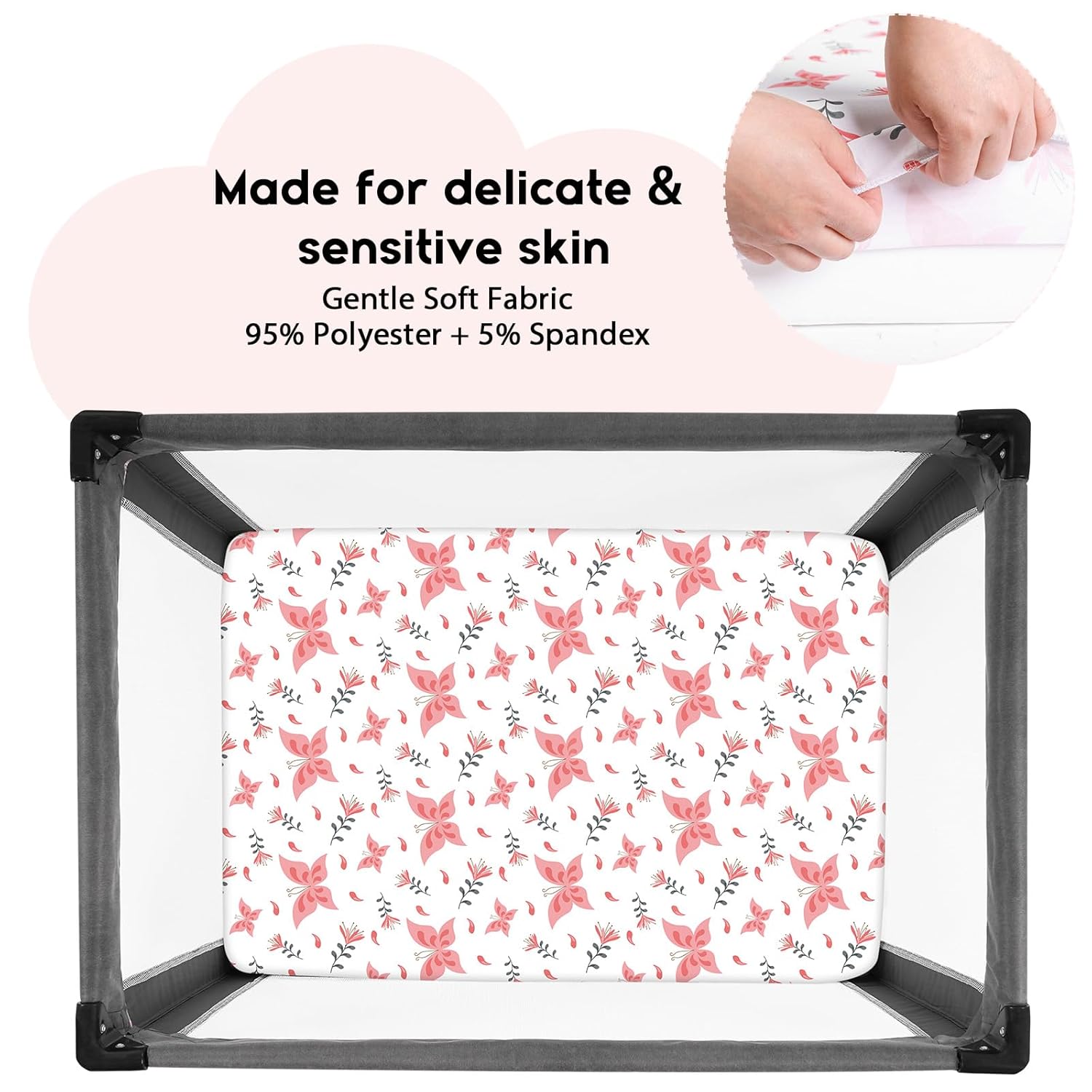 - COZY AND BREATHABLE: Made from 95% microfiber & 5% spandex, our pack and play sheets are gentle and safe to touch, does not irritate baby's delicate skin. The breathable fabric also allows air to pass through easily and brings your baby a peaceful dream.