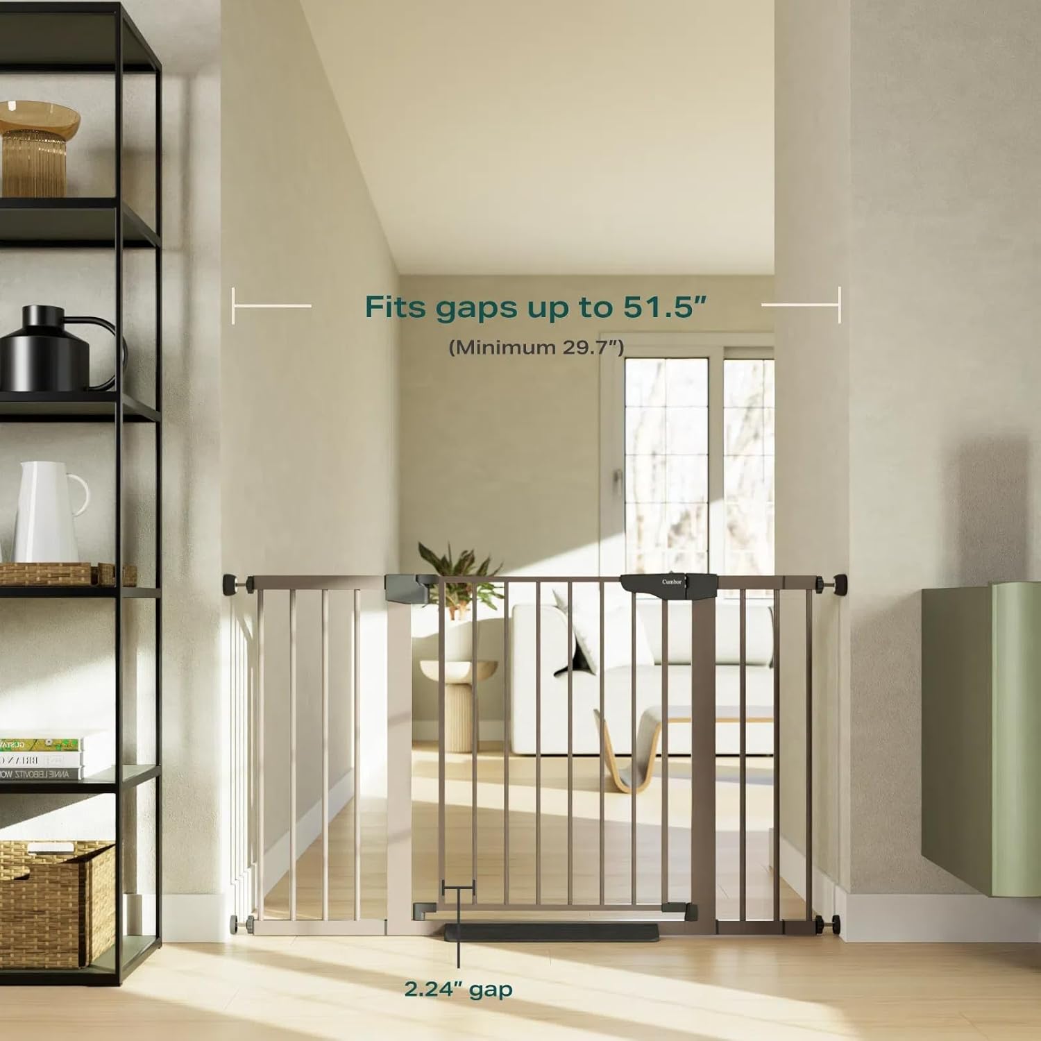 Cumbor 2 Pack 29.7"-51.5" Extra Wide Baby Gate for Stairs, Mom's Choice Awards Winner-Dog Gates for Doorways, Pressure Mounted Walk Through Pet Gate Indoor, Safety Auto-Close Child Gate for Kid,Brown