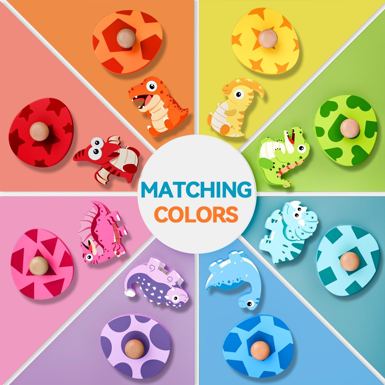 Dinosaur Wooden Puzzles for Toddlers 1-3, Montessori Toys for 1 2 Year Old Boy Birthday Gifts, Dinosaur Matching Eggs Peg Puzzles for Toddlers Age 2-4, Preschool Learning Activities for Girls
