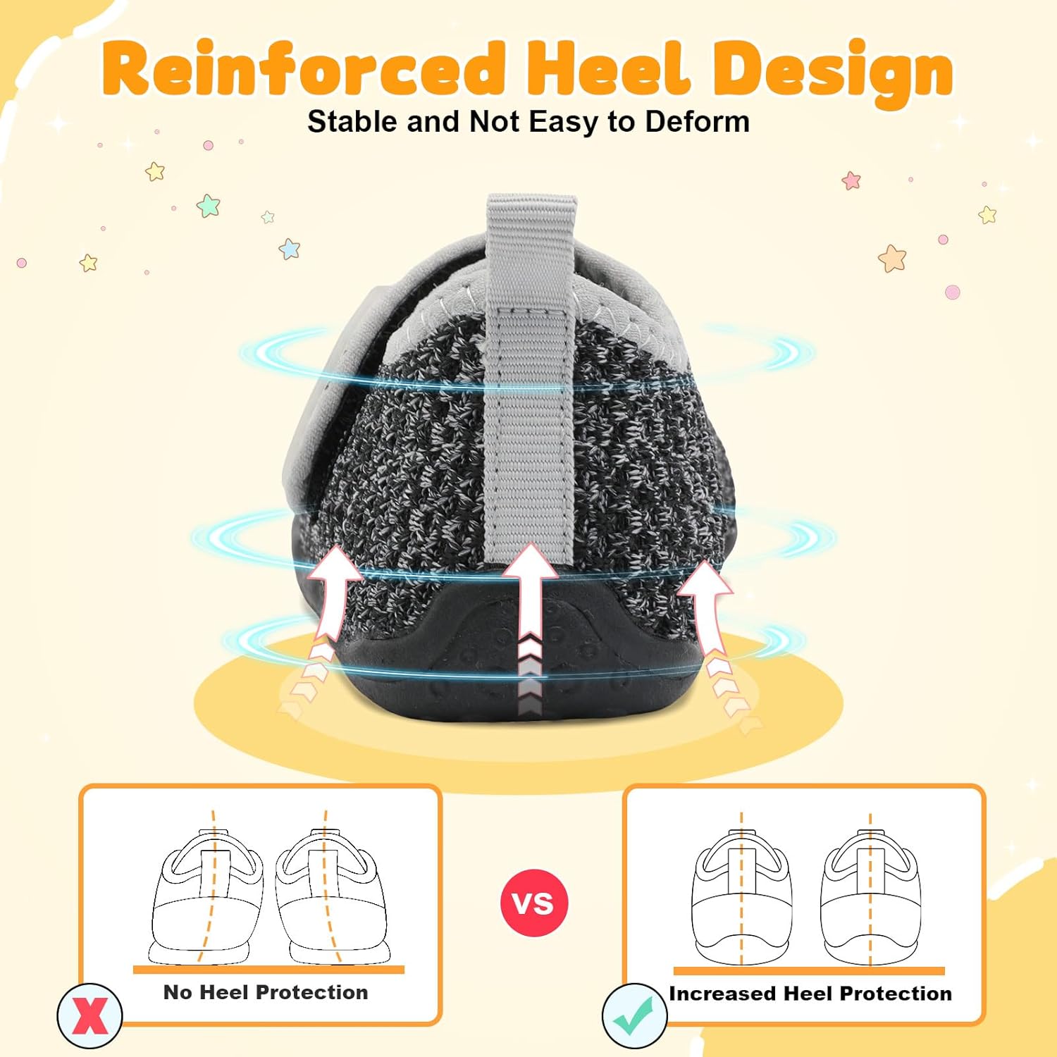 • Reinforced Heel Design: Stabilizes the soft tissue of baby's heel to grow straight and without deformation. Learning to walk is safer, no broken feet