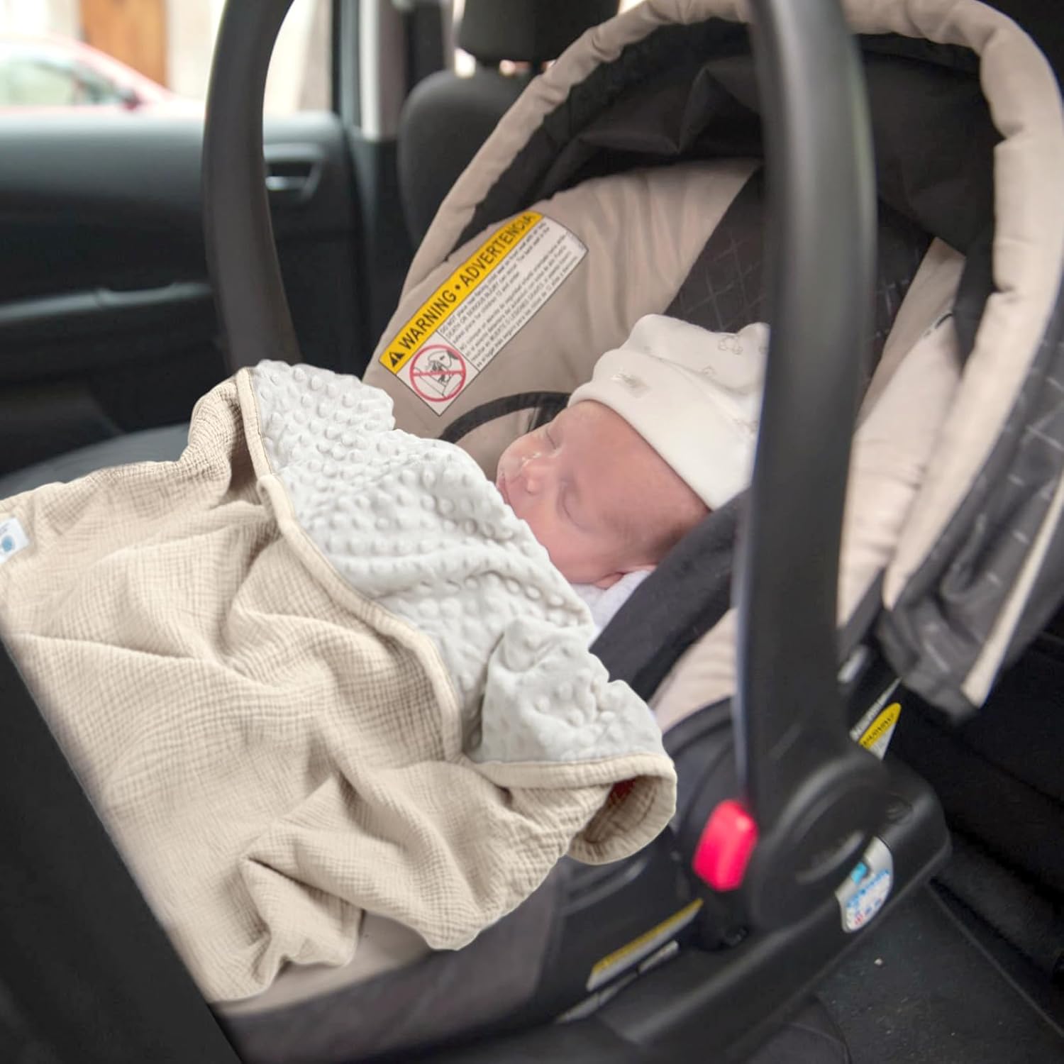 - Lightweight Dual-Fabric Design: Muslin & Minky Dot - Features a breathable muslin front and a warm minky fleece back. The lightweight, double-layer construction balances airflow and thermal retention, ideal for naps or daily cuddling