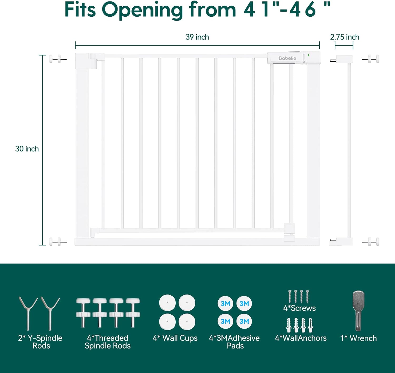 BABELIO Baby Gate for Doorways and Stairs, 41-46" Pet Gate with Wide Walk Thru Door and Lock Indicator, No Drill Pressure Mounted Safety Gate with Double Lock and Self-Closing, White