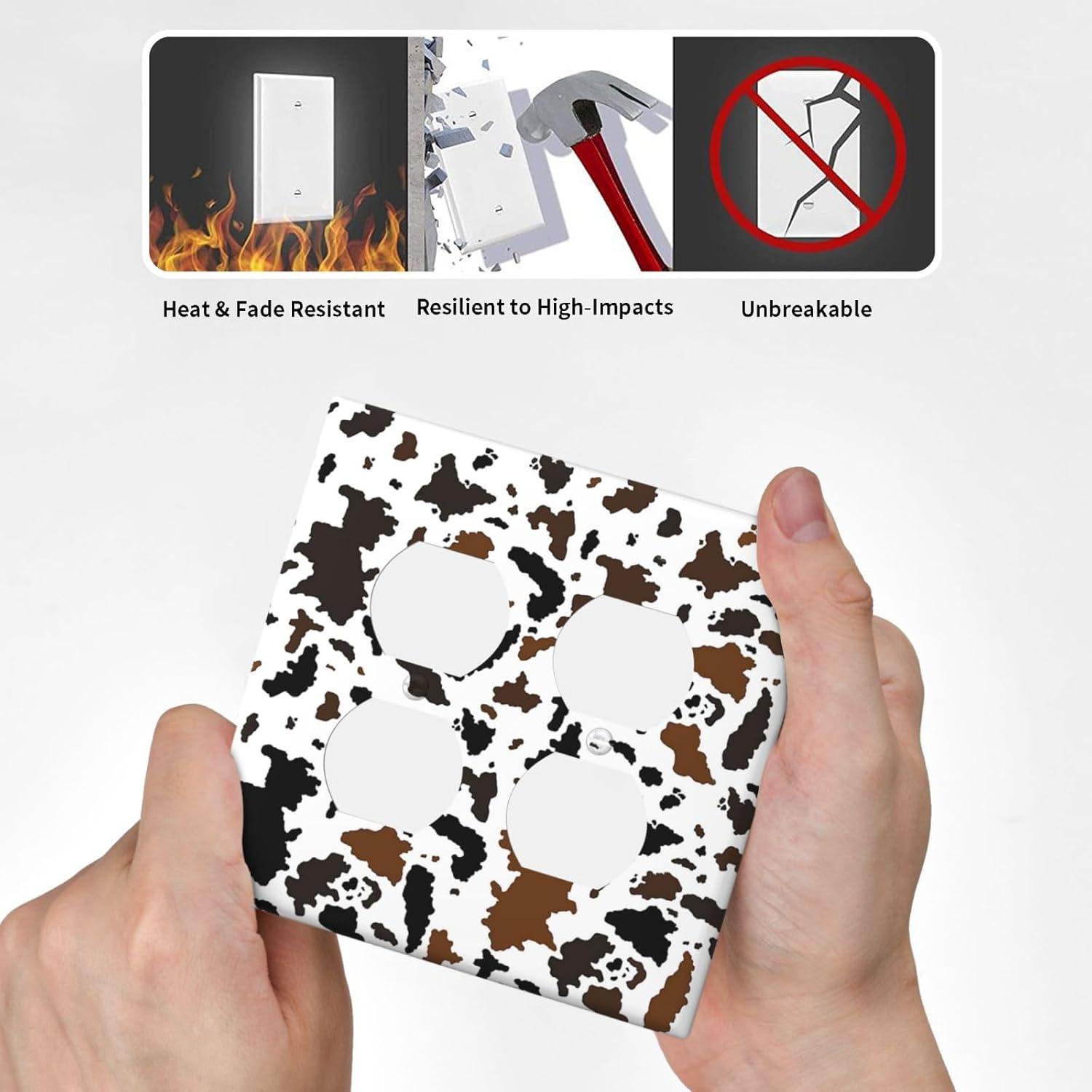 Outlet Covers Rustic Cowhide Highland Cow Milk Cow 2 Gang Double Duplex Decorative Light Switch Covers Electrical Wallplates Socket Faceplate For Farmhouse Home Decor