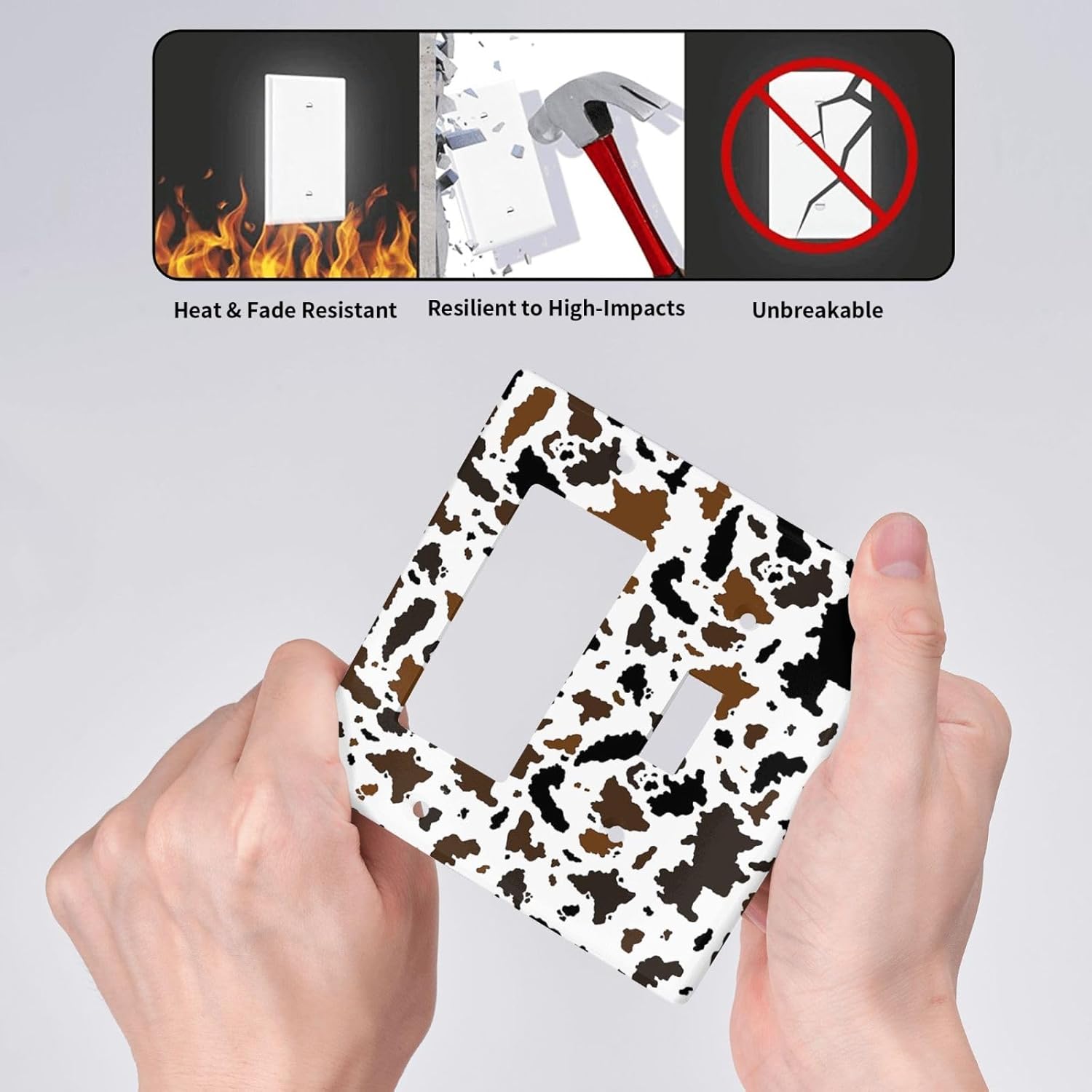 Outlet Covers Rustic Cowhide Highland Cow Milk Cow 1 Toggle 1 Rocker Combination Decorative Wall Plate Electrical Switch Plates Light Switch Cover Plate For Farmhouse Home Decor