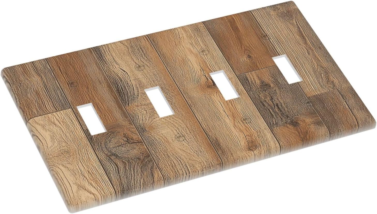 Light Switch Covers Retro Rustic Brown Wood Grain Quad Toggle Electrical Faceplate 4 Gang Wall Plate Decorative Switch Plates For Farmhouse Cabin Decor