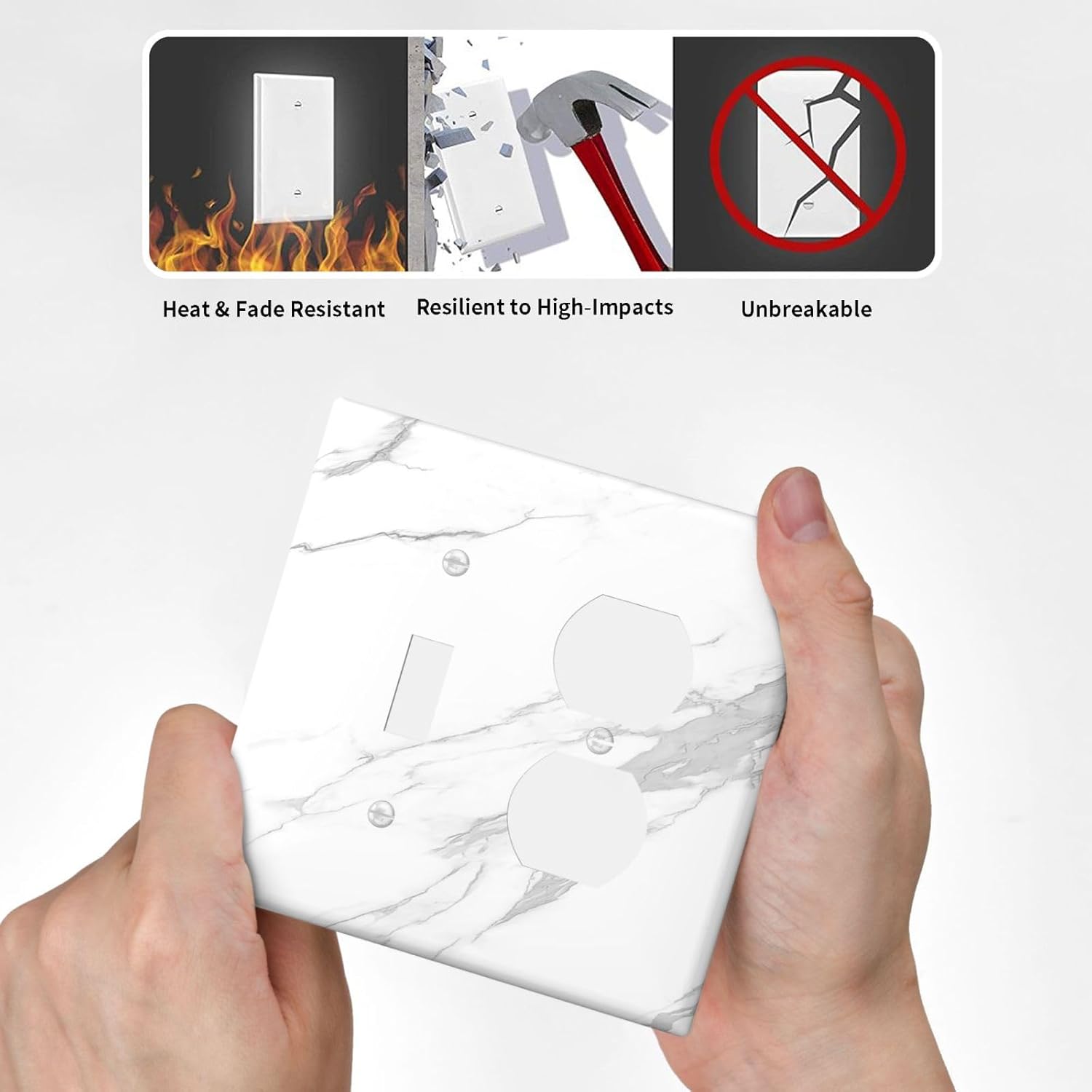 Wallplates Modern White Gray Marble 1 Toggle 1 Duplex Switch Plate Electrical GFCI Faceplate Decorative Light Switch Covers for living Room Bathroom Decor