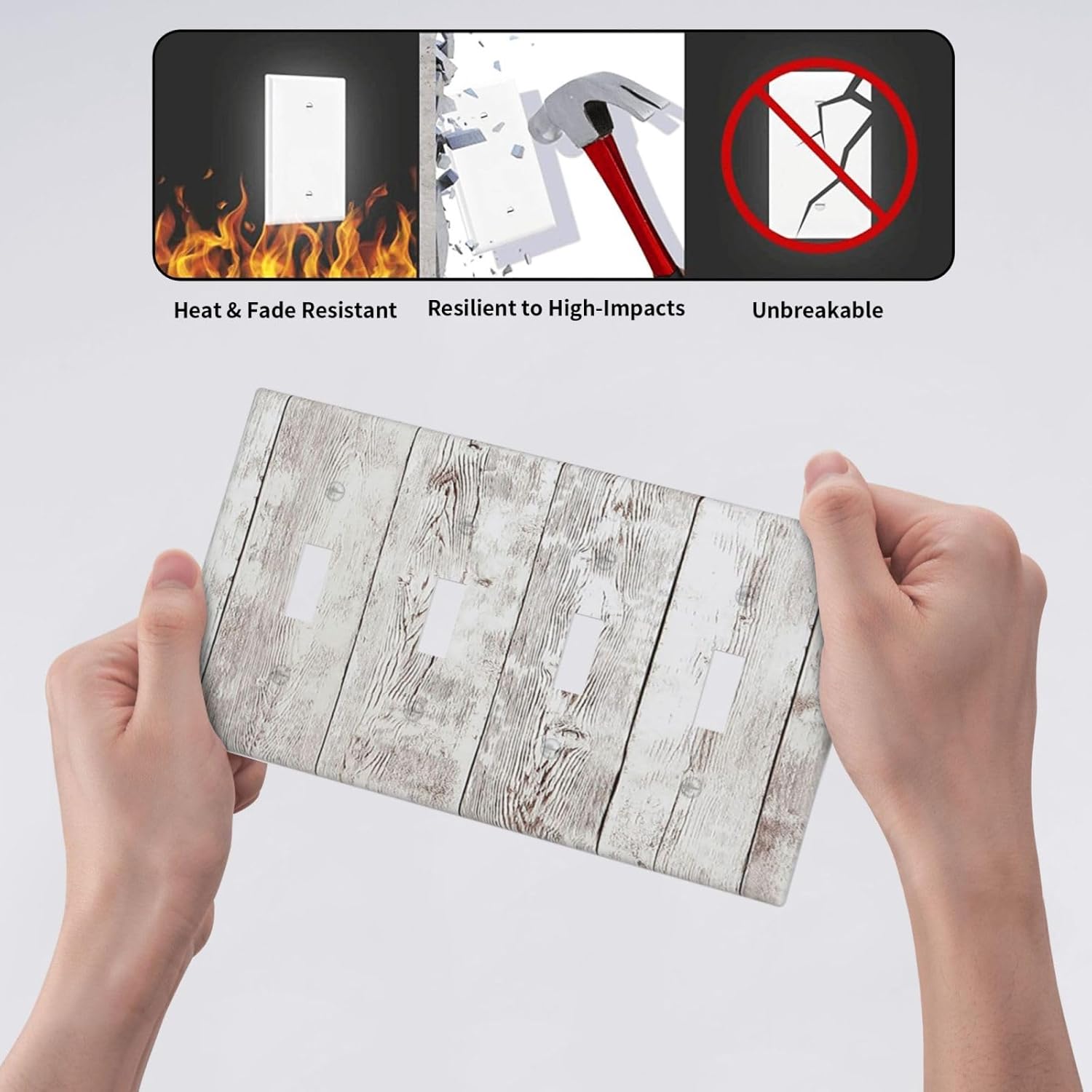 Light Switch Covers Rustic Vintage White Wood Grain Quad Toggle Electrical Faceplate 4 Gang Wall Plate Decorative Switch Plates for Farmhouse Home Decor