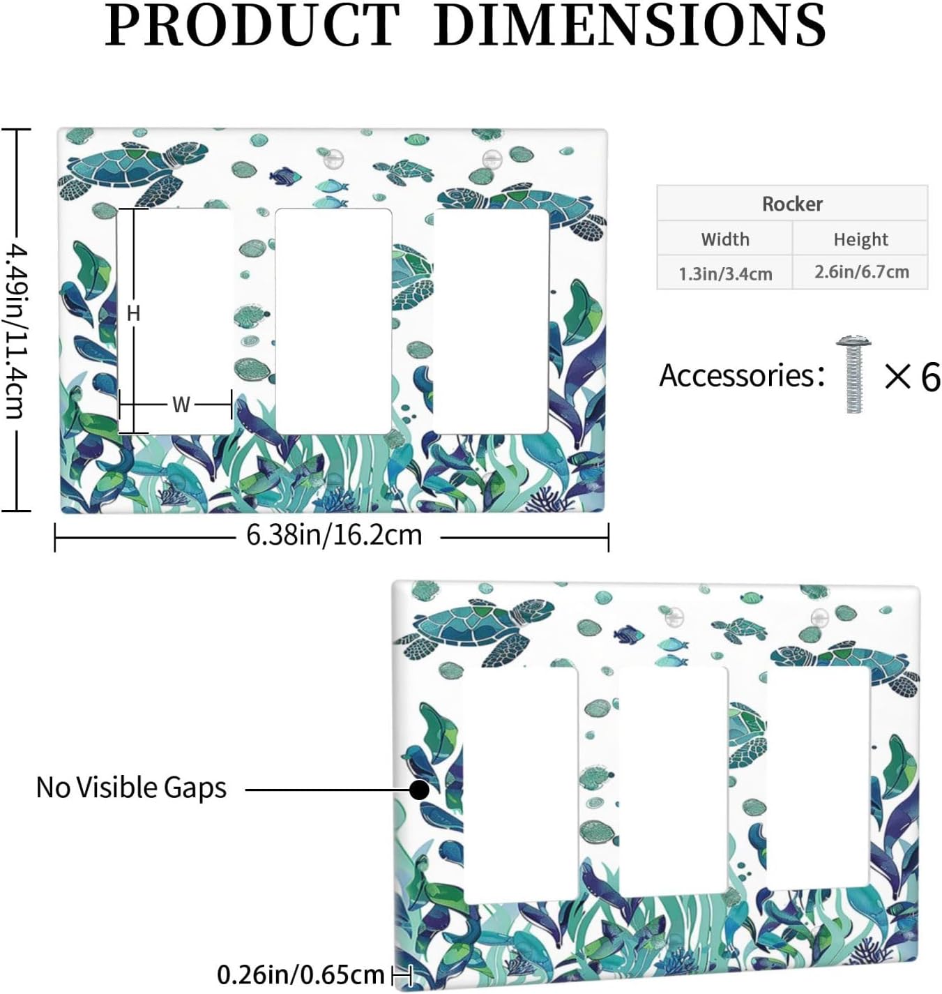Light Switch Covers Vibrant Turtle Seagrass Watercolor Painting 3 Gang Rocker Electrical GFCI Decorative Triple Outlet Wall Plate Cover Switchplate for Bathroom living Room Decor