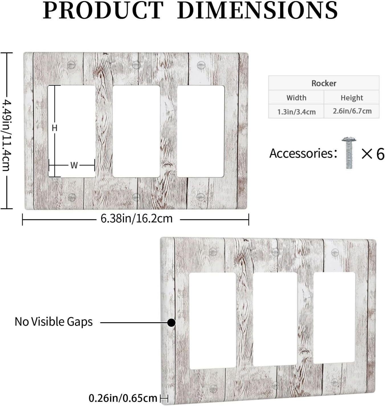 Light Switch Covers Rustic Vintage White Wood Grain 3 Gang Rocker Electrical GFCI Decorative Triple Outlet Wall Plate Cover Switchplate for Farmhouse Home Decor