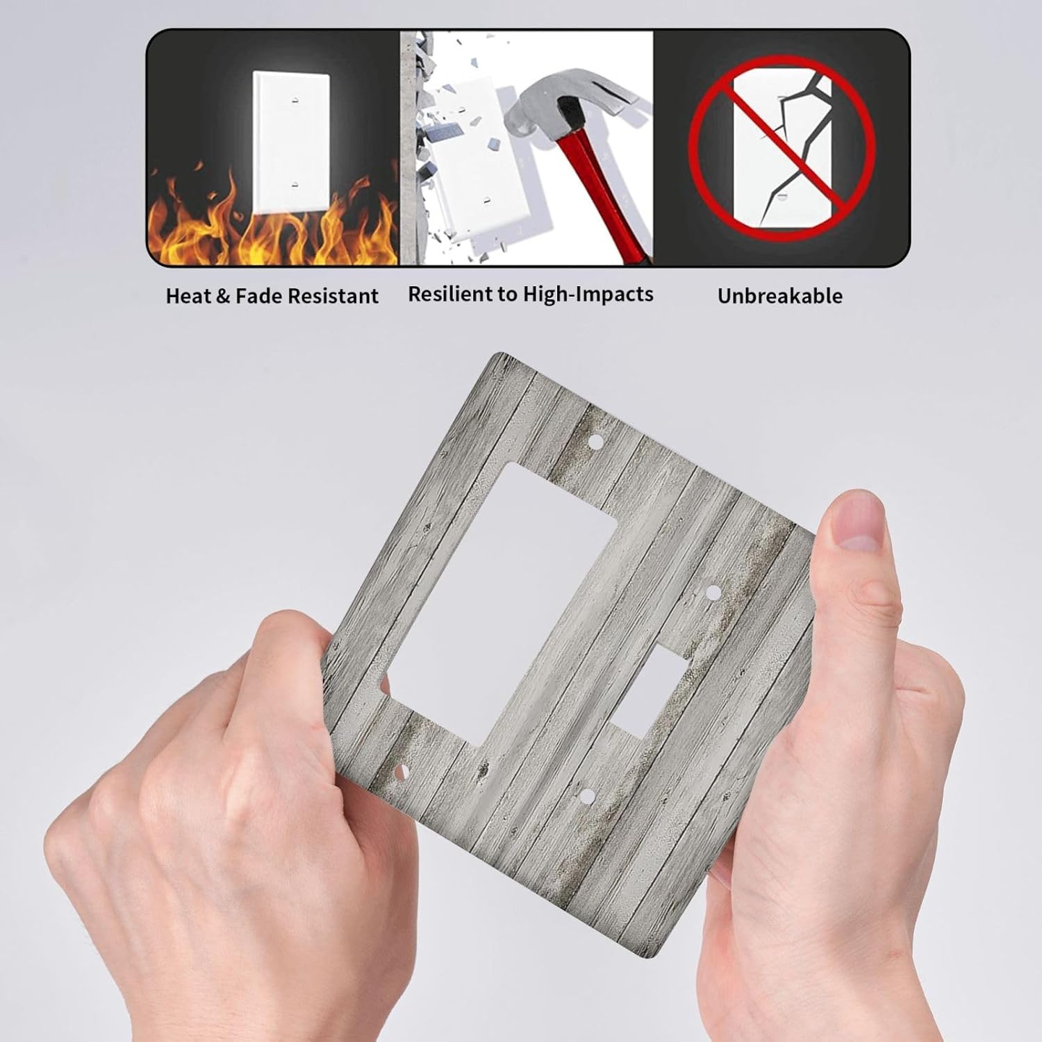 Outlet Covers Farmhouse Rustic Grey Barn Door Wood 1 Toggle 1 Rocker Combination Decorative Wall Plate Electrical Switch Plates Light Switch Cover Plate for Bedroom Cabin Decor