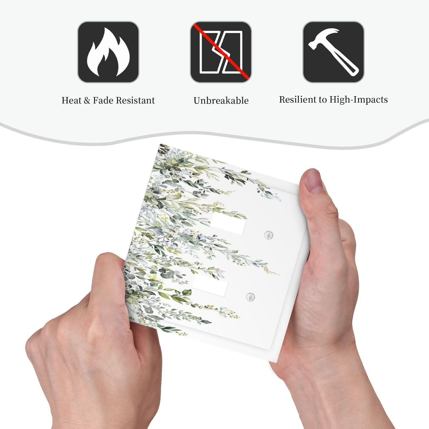 Decorative Switch Plates Boho Farmhouse Flower Leaf Sage Green 2 Gang Double Toggle Outlet Light Switch Cover Wall Plate Electrical Faceplate for Bedroom Cabin Decor