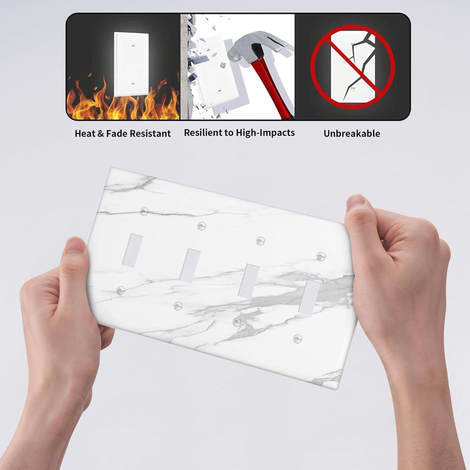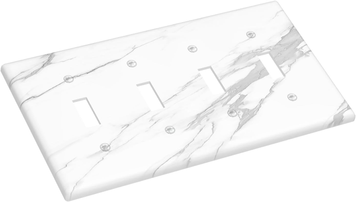 Light Switch Covers Modern White Gray Marble Quad Toggle Electrical Faceplate 4 Gang Wall Plate Decorative Switch Plates for living Room Bathroom Decor