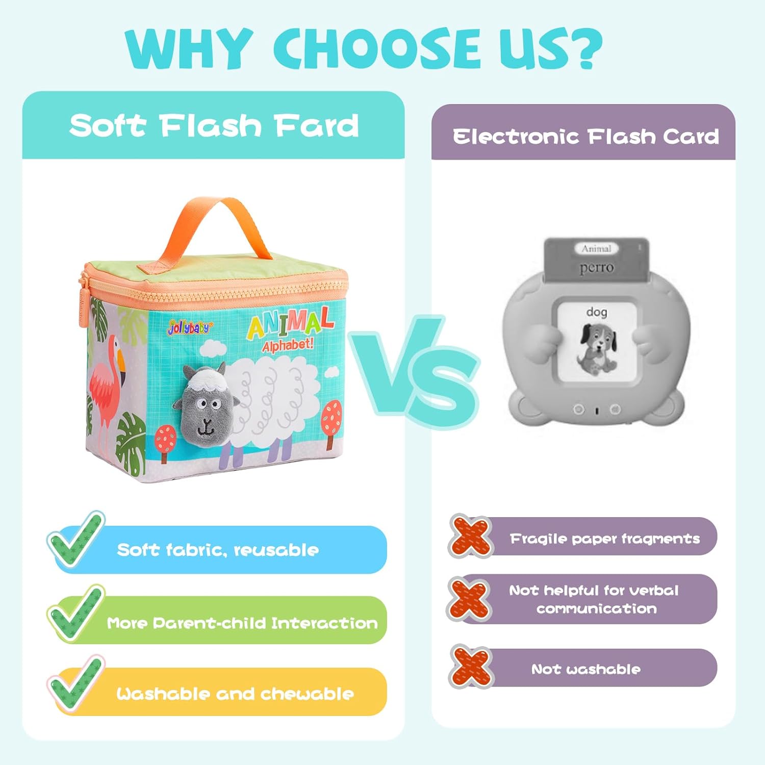 - Safety Engineered for Baby: First words flashcards Features rounded, double-stitched edges (no scratchy seams!). The ultra-lightweight material (0.25 inches thickness) bends effortlessly for tiny fingers to grip, fostering fine motor skills. Vocabulary flash cards passes all safety tests – because baby’s health comes first!