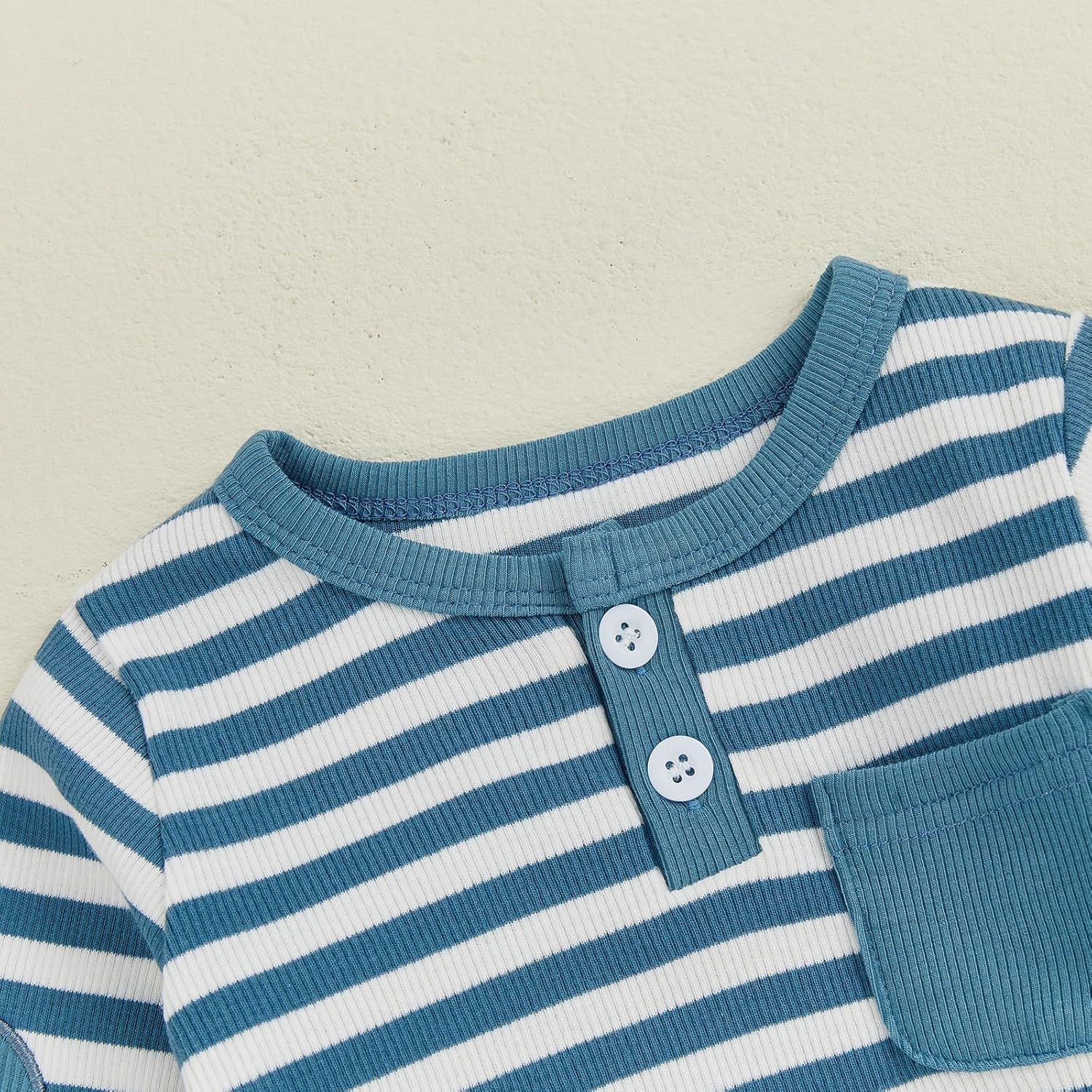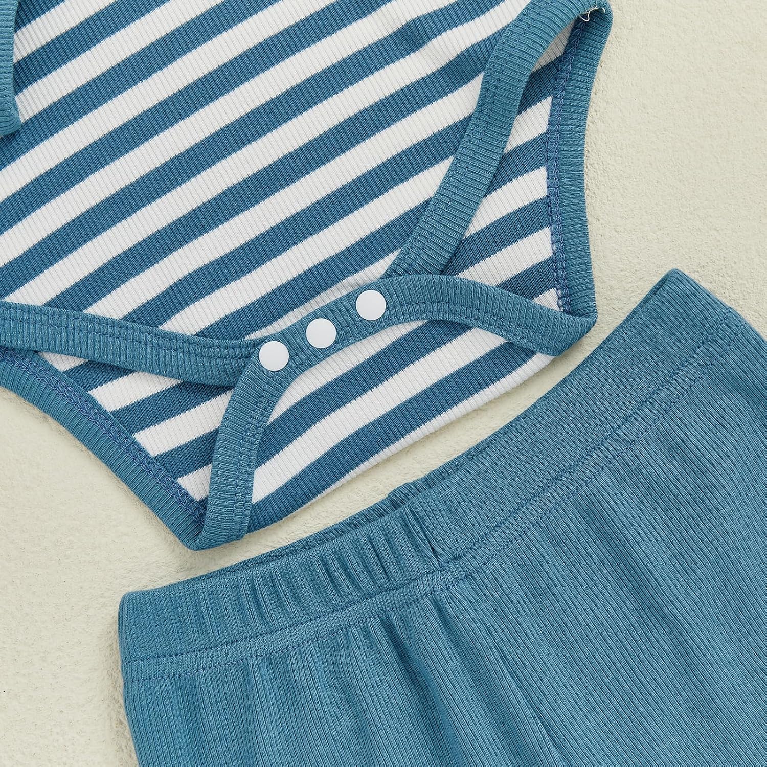 fhutpw Baby Boy Clothes 3 6 12 18 Months Ribbed Knitted Long Sleeve Romper and Pants Sets Newborn Fall Splicing Color Outfits