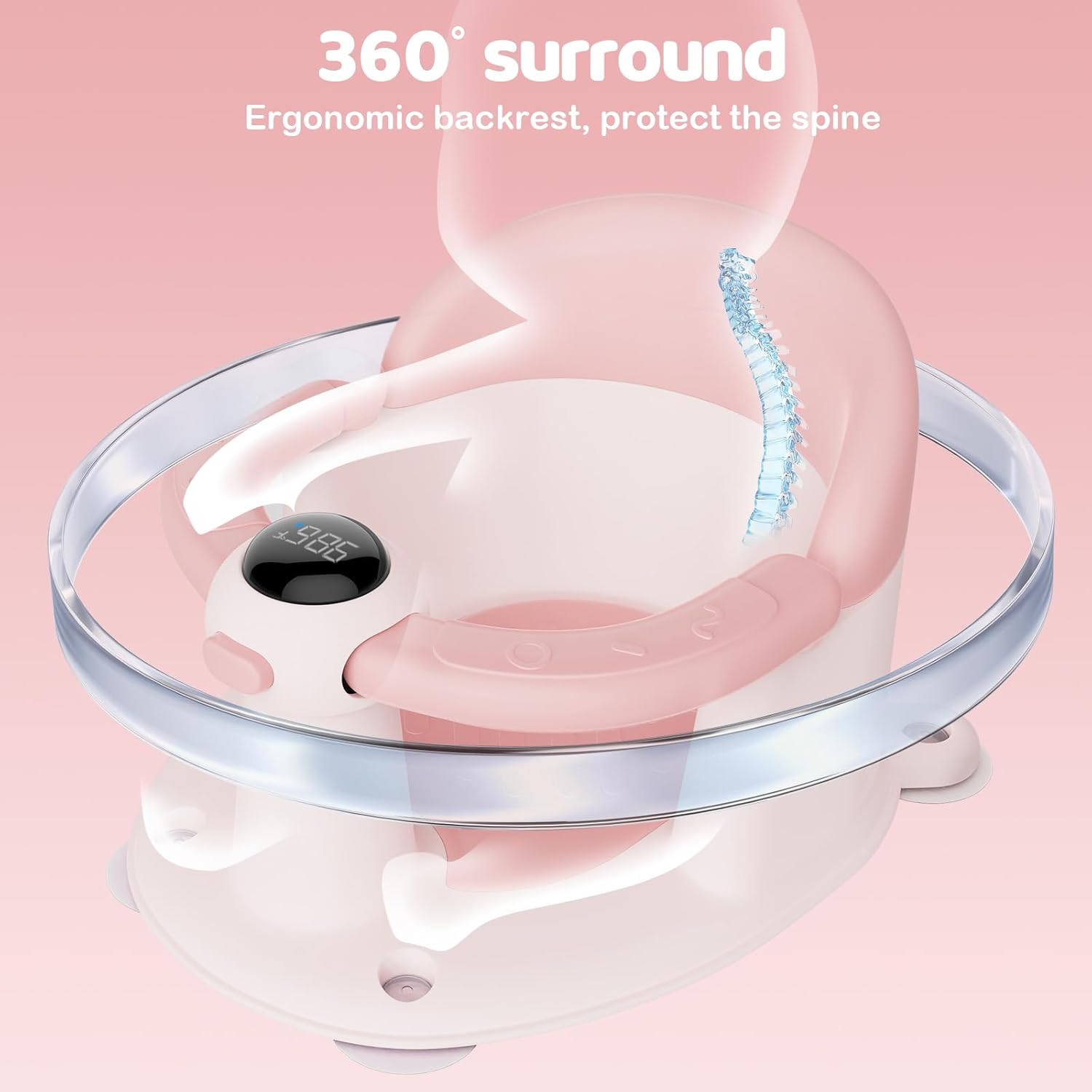 Baby Bath Seat-for Babies 6 Months & up, Water Temperature Display+Soft Cushion, Non-Slip Toddler Bath Seat for Baby, Sit Up Bath Seat for Baby, Pink