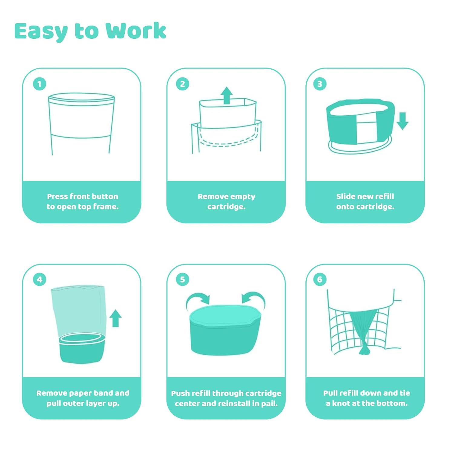 - Available in 2-Pack and value-packed 4-Pack options, these diaper pail refill bags combine flexibility and cost-effectiveness, ensuring a plentiful supply for busy parents to manage daily nursery needs with ease.