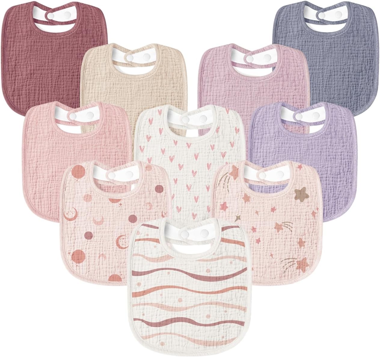 Susurration Muslin Baby Drool Bibs 10Pack Soft Square Adjustable Bandana Bibs for Unisex Baby Girls & Boys