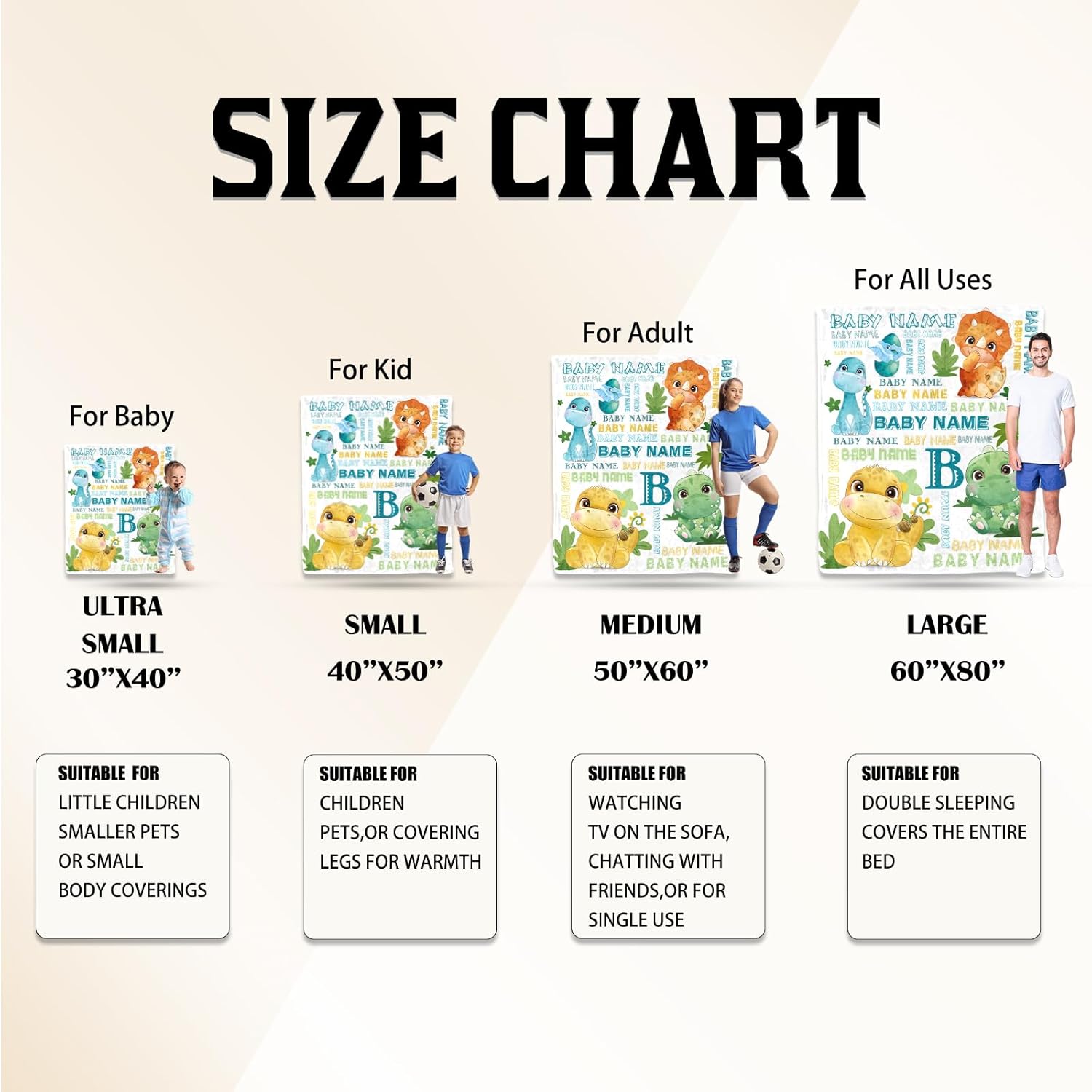- Multiple Sizes & Colors Baby Blanket -- custom name blanket are available in 5 colors and 4 sizes: 30"x40" , 40"x50" , 50"x60" (single beds), 60"x80" (family movie nights).Select your loved one’s favorite shade to create a treasured keepsake that infuses their world with color. Thoughtfully crafted for both gifting and everyday cuddles, these blankets grow with your child while keeping memories vivid wash after wash.